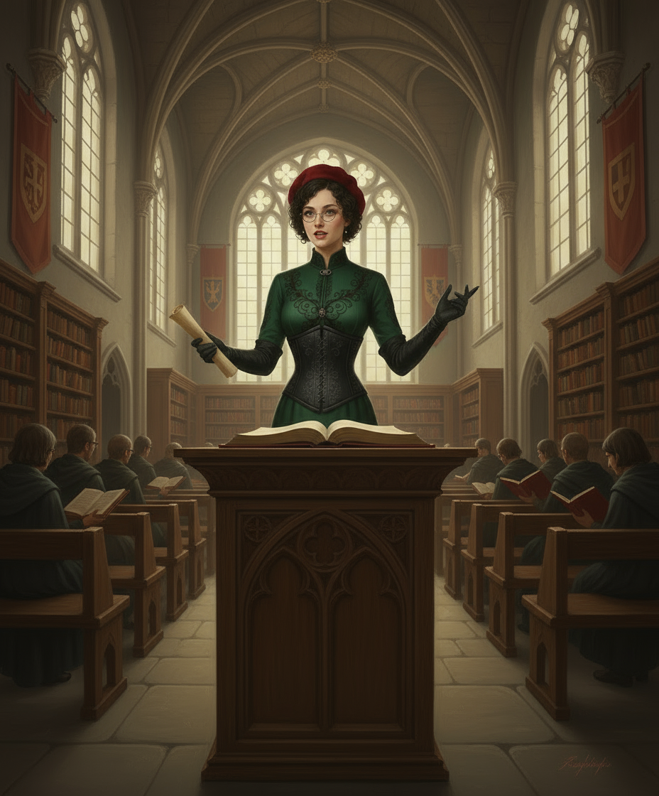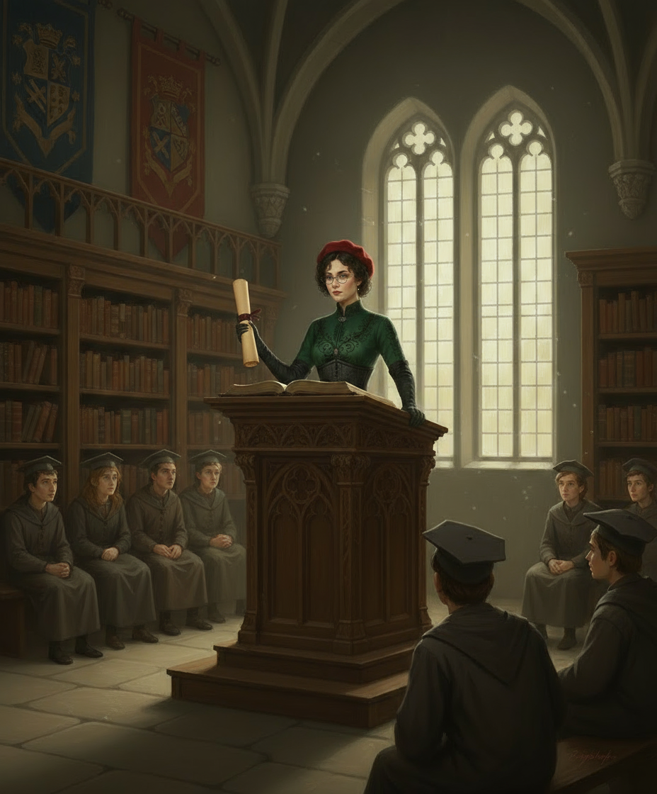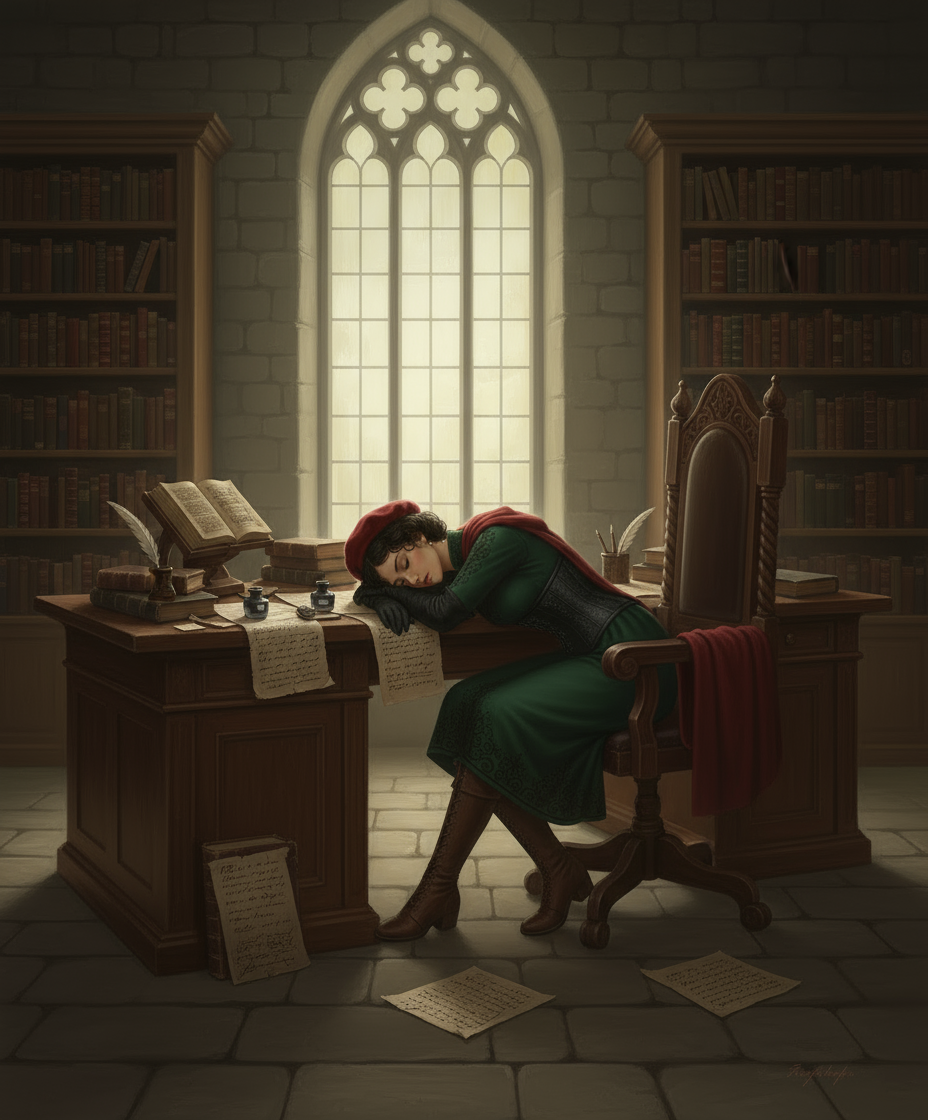 Ну а дальше понеслось и я сотворил целый сет картинок, отталкиваясь от этой как базы. Все они вполне каноничны к жизни Розы после событий романов - когда она ещё не получила корону, зато была уже рыцарем, заместителем ректором (а позже ректором) Академии, главой комитета по борьбе с магическими бедствиями. В последней роли она была особенно занята в первые годы после Ночи Огня. Итак...