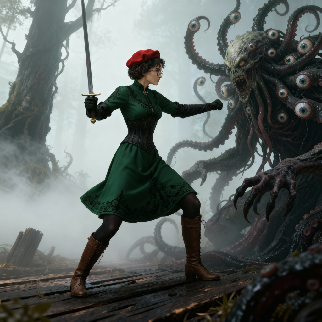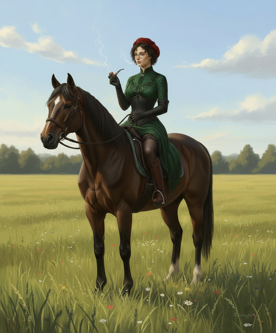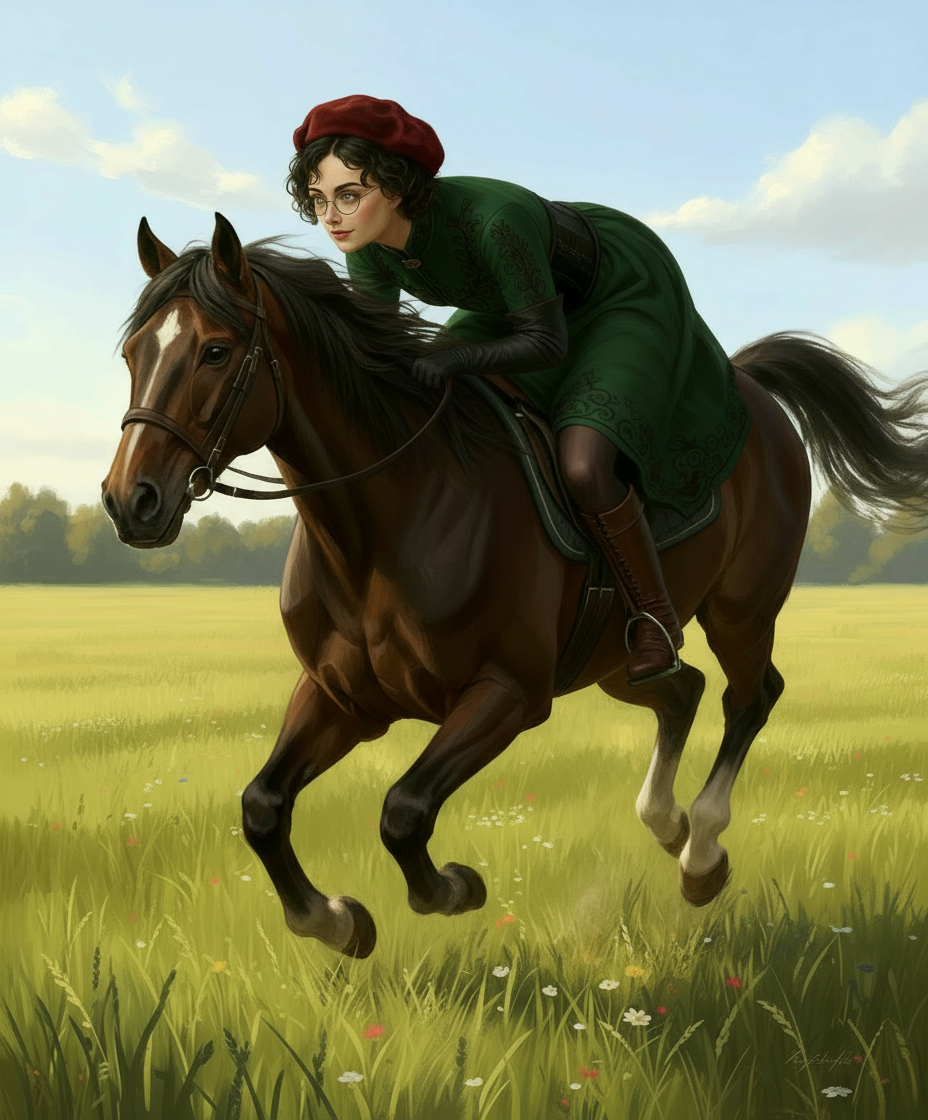 Автор: Руслан БирюшевСегодня я планировал сгенерировать портреты ещё нескольких второстепенных персонажей Дертской дилогии, однако отвлёкся на доработку портретов героини главной - Розы Гранчи. Мне всё никак не удавалось создать лишь по описанию её образ в зелёном платье и длинных перчатках, который столь чудесно отобразила Ёуки. Тогда я решил пойти по пути эволюционному, но как референс применив другой рисунок от нейросети - Розы в повседневном платье. Я преобразил это платье в нужное и добавил прочие детали путём описания. И вышло... ну, то, что надо.