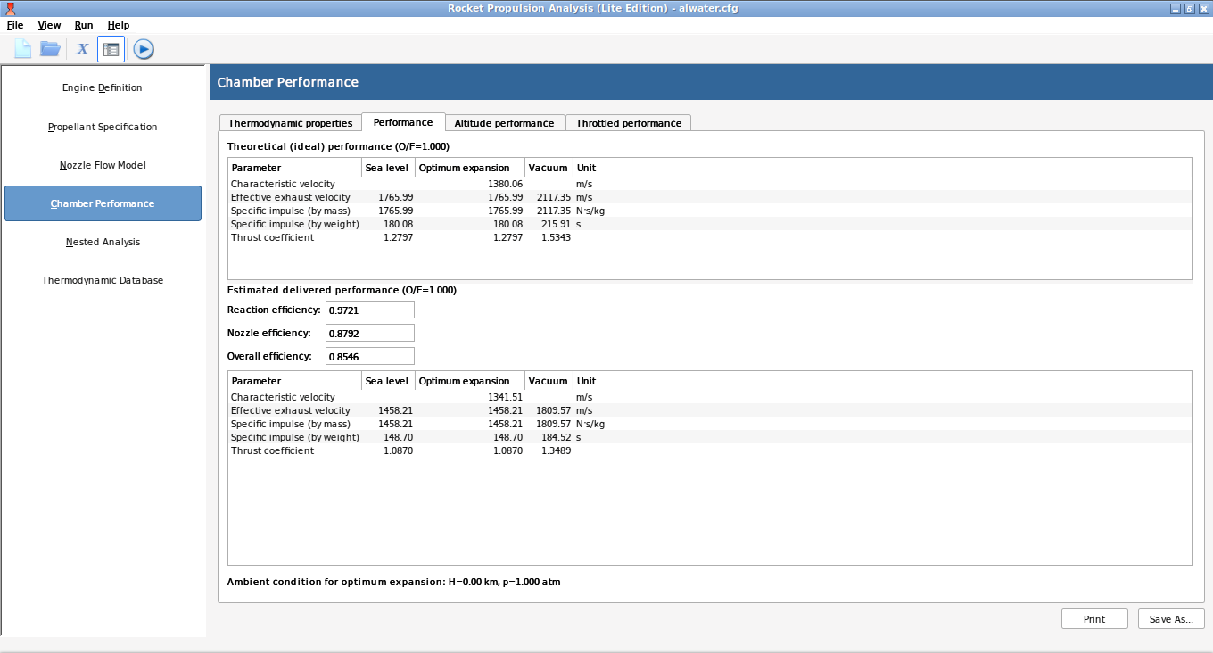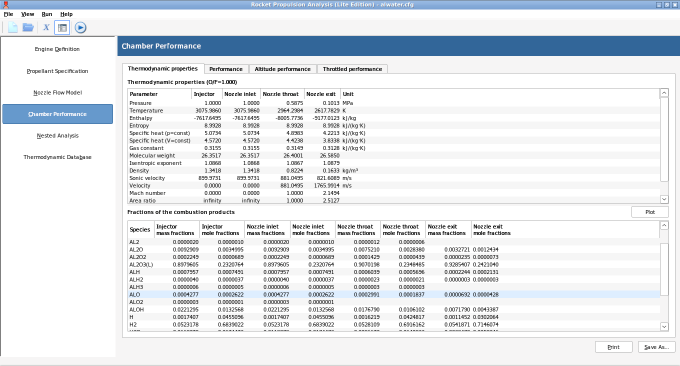 Смоделировать горение и истечение газов я попробовал в Rocket Propellant Analysis [5] - там можно проверить горение очень много чего в очень много чем.