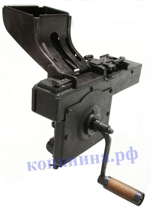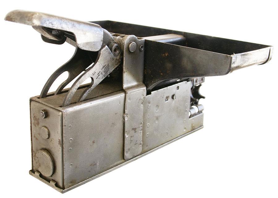 Современный немецкий аппарат для набивания пулеметных лент патронами: