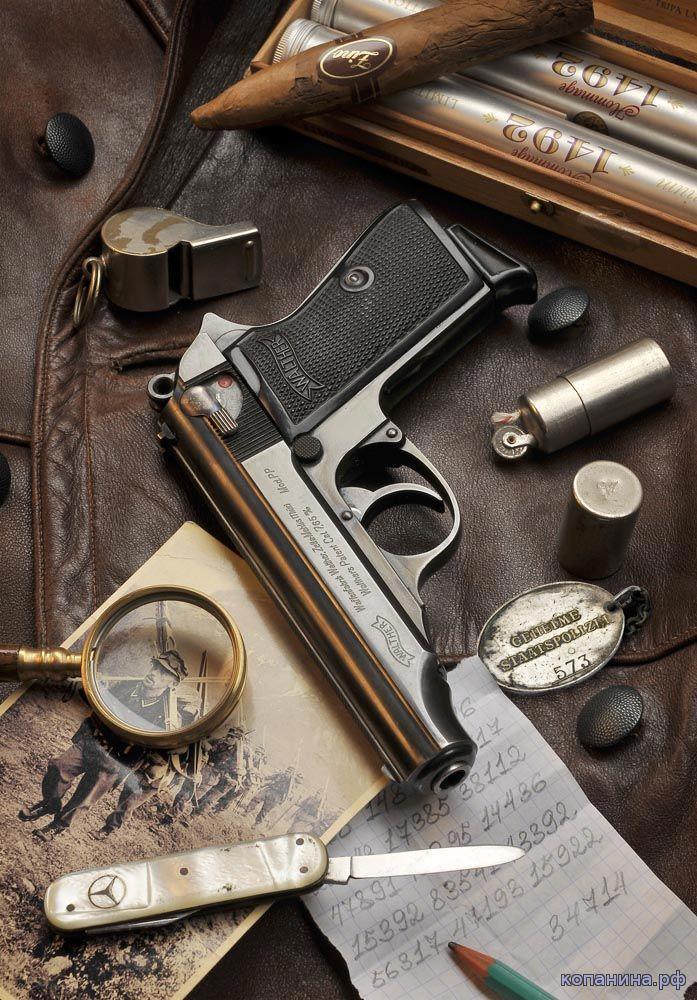 Вальтер ППК. Популяризирован Джемсом Бондом. А так - оружие вермахта в полный рост. И сувенирный ножик от Бенца. Они много в плане рекламы выпекали бытовухи сувенирной.