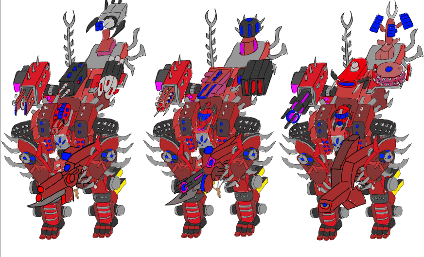 Кор-рамы немного пересмотрели концепцию военной техники. В то время как люди используют помимо шагающего и антигравитационного привода старые добрые колёса и гусеницы, кор -рамы полностью полагаются на шагателей.