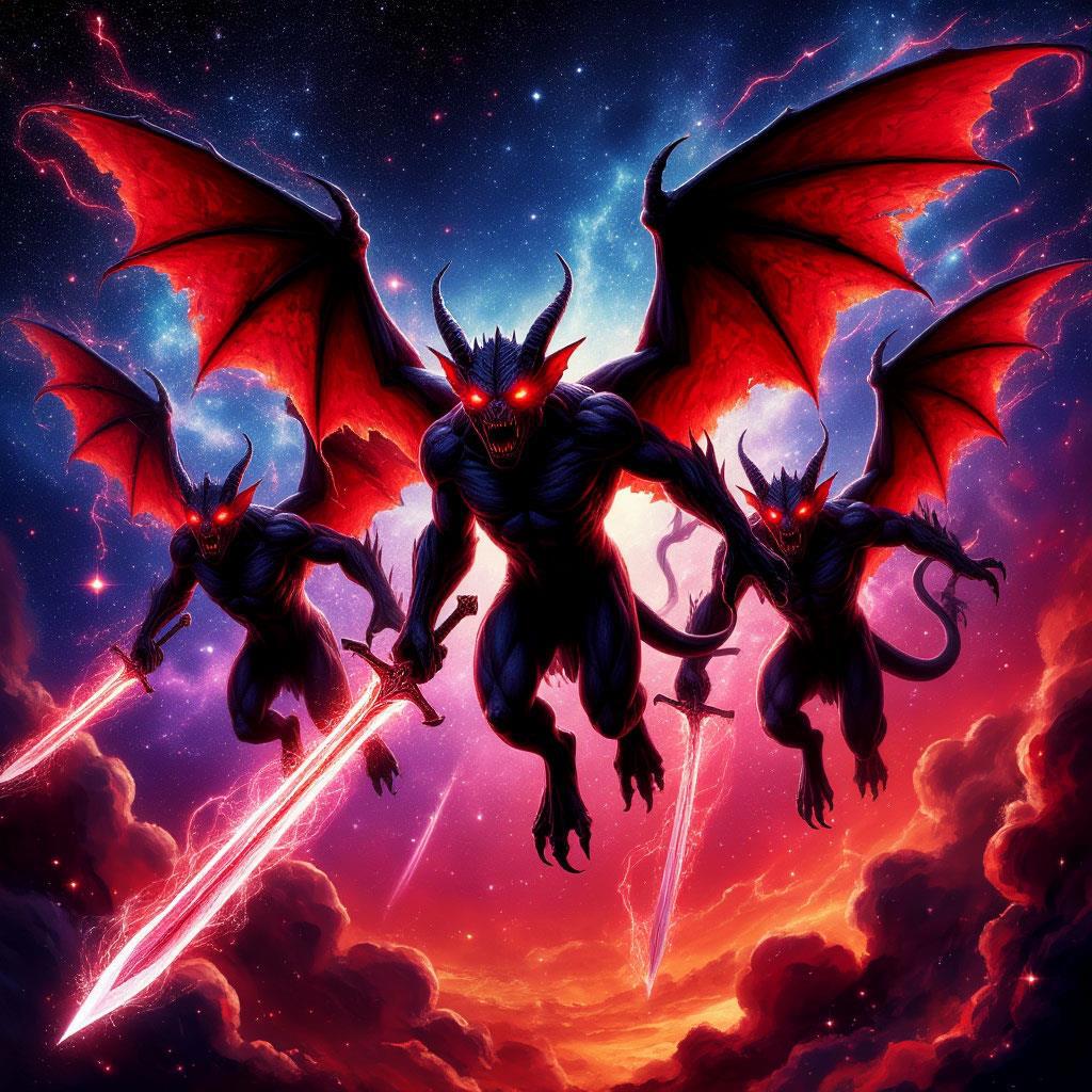 Демон. Воплощением силы и могущества среди этого мерзкого хаоса. Высокий, с блестящей чёрной кожей. Его крылья, похожие на перепончатые лоскуты, сложены за спиной. Он наблюдал за пиршеством тварей с удовольствием на вытянутой морде.