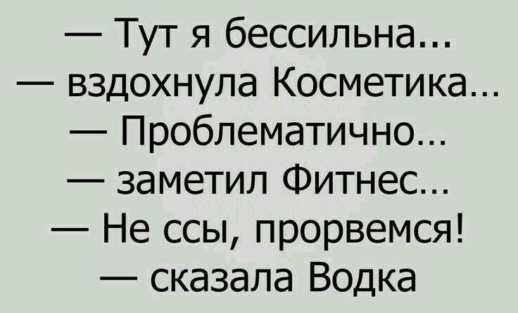 Ты понимаешь - у тебя должна быть диета, посещение кедровой бочки, фитнесс обязателен, магическая вода на похудение, афермации (для тех кто не знает что это: это определённая позитивная установка, которая постоянно повторяется словесно), ниточку с узелками на руку, не забываем про рунический став, комплекс витаминов (без него вообще ничего не получится, потому как организм будет требовать того чего не хватает) и самое главное - изменить своё сознание и понять причны - почему ты толстеешь!