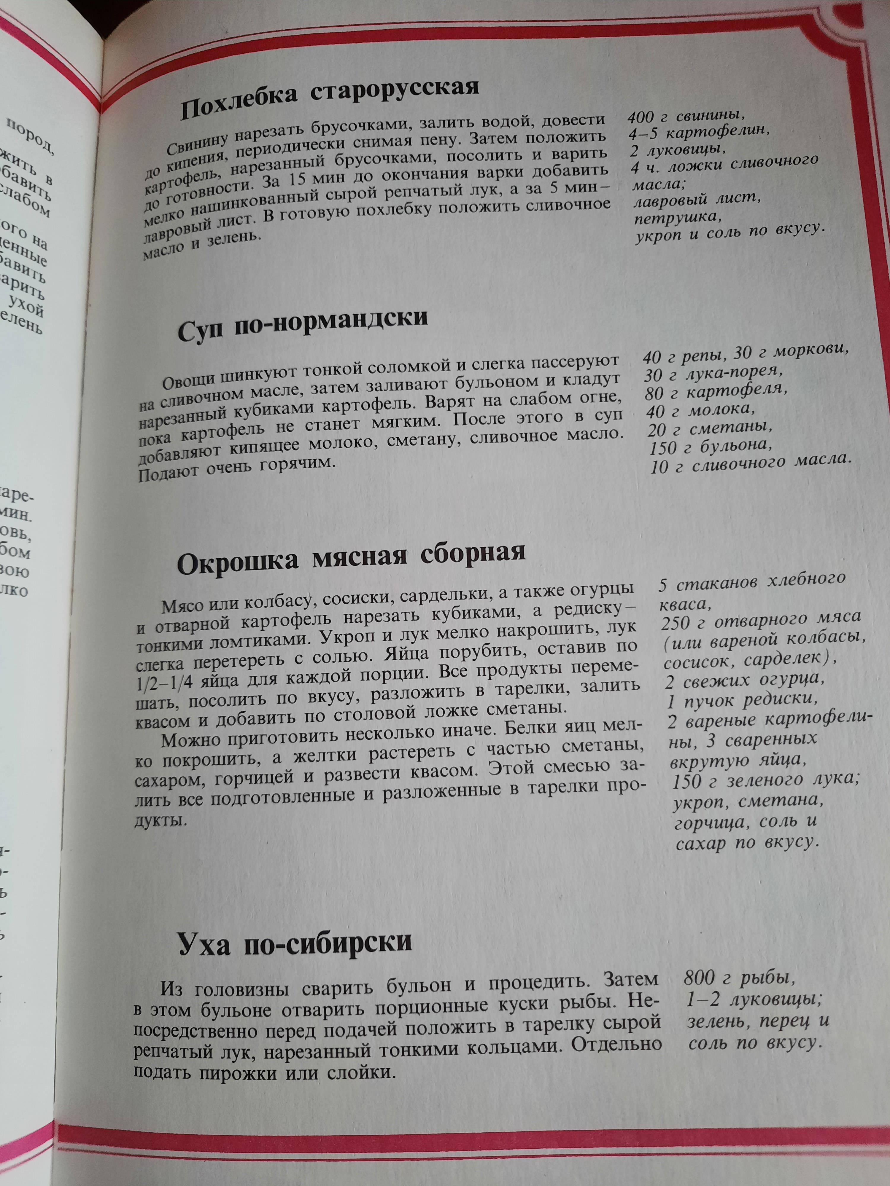 Автор: Макс КовалёвСовершенно внезапно, на каких-то дальних кухонных полках обнаружилась кулинарная книга. Зато теперь стало ясно, что видимо именно её использовали в советских ещё ресторанах и некоторых столовых до сих пор им усиленно подражающим. А названия-то какие. "Суп по-нормандски". Абсолютно понятно, что едали норманны прежде чем отправиться в набеги кого-нибудь потрошить ...