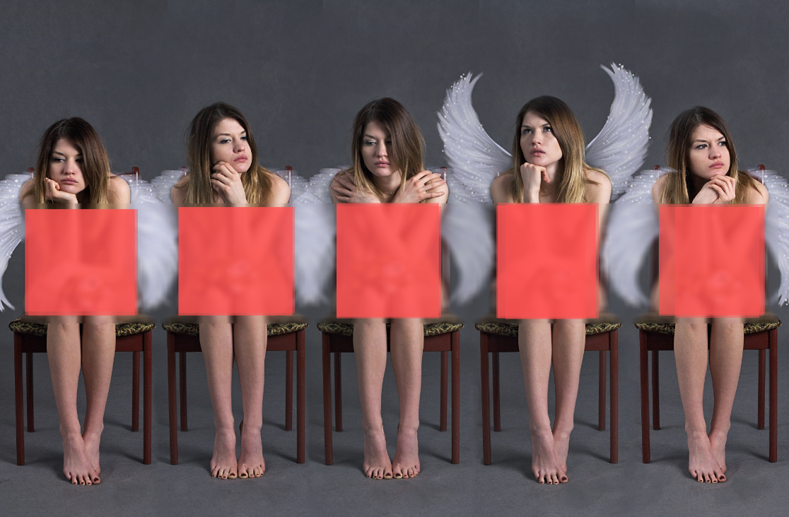 Увидел я на днях одну рекламку, от которой у меня буквально во рту пересохло. Да я вообще весь остолбенел. Ситуация была похожа с той, которую я изобразил на картинке. Видите этих девушек? Вернее, это одна девушка в разных образах. Я слегка замазал всё, что можно счесть неприличным. Как Вы думаете, что эта картинка может рекламировать?