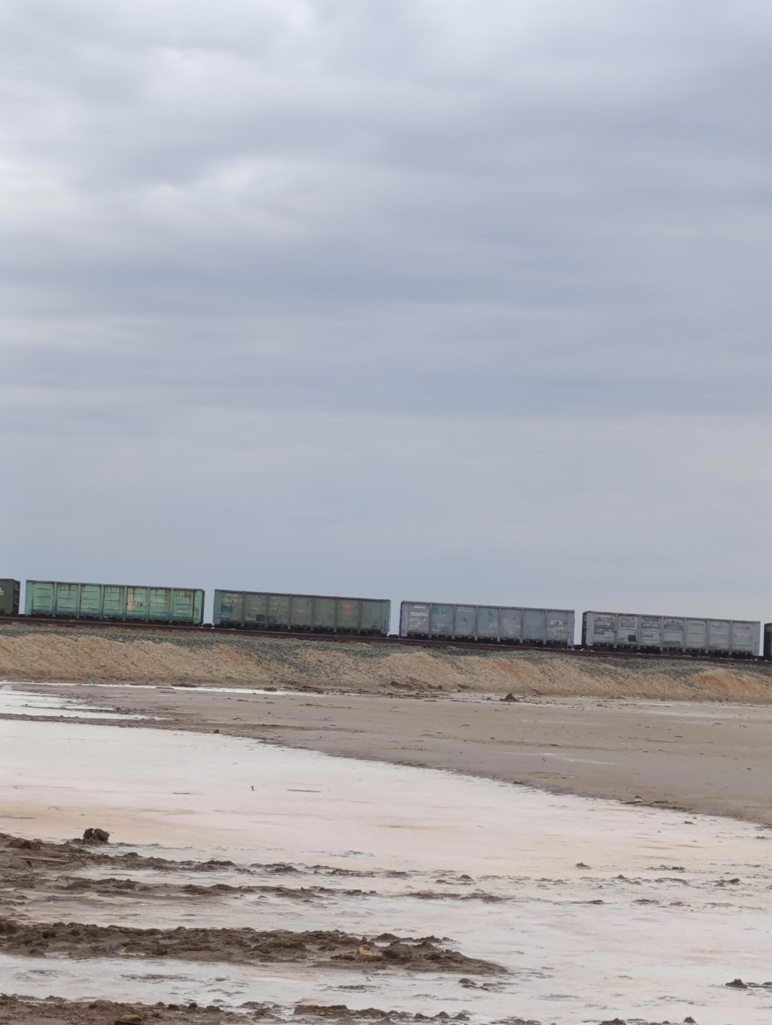 У ног горы растянулось солевое озеро Баскунчак