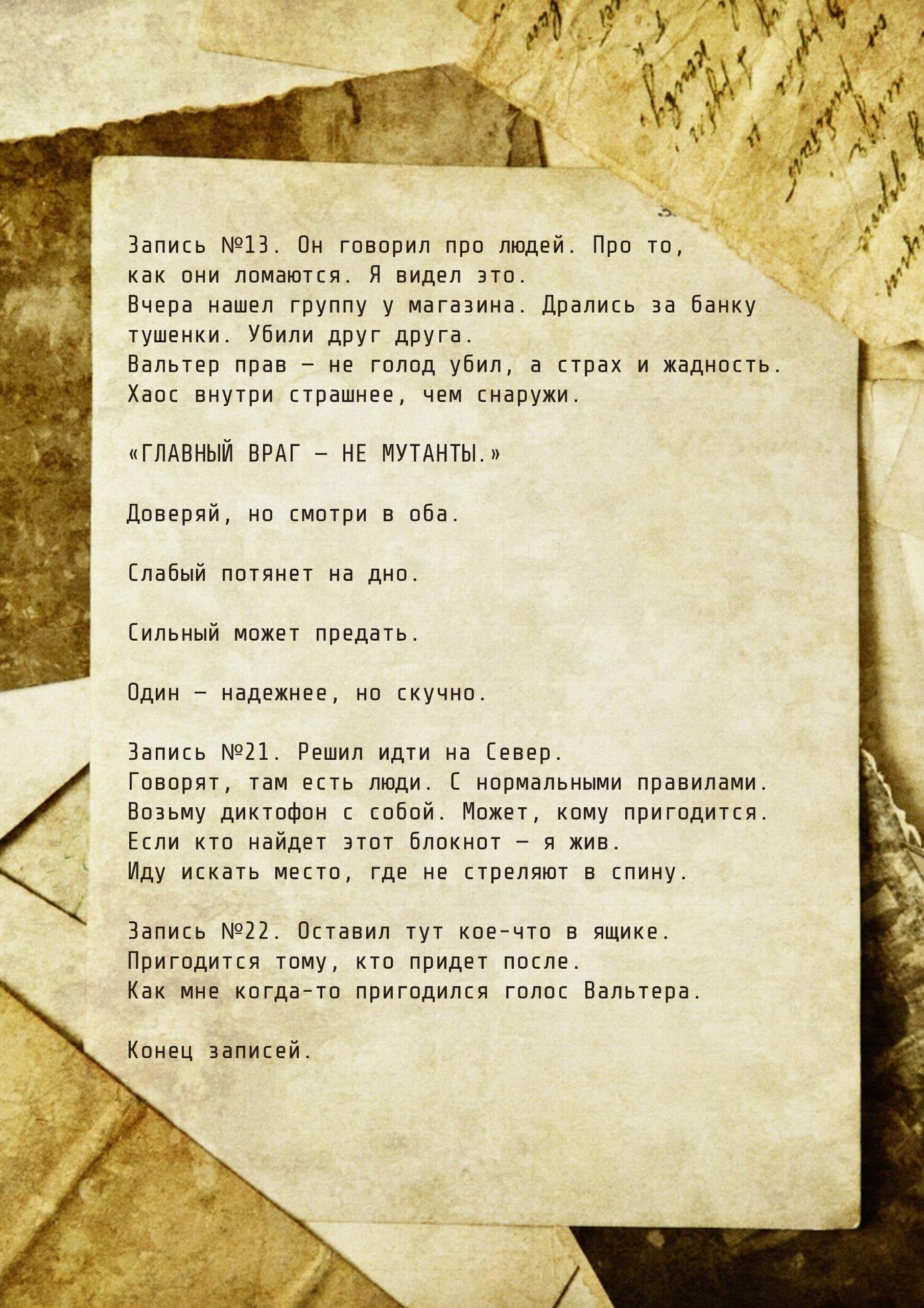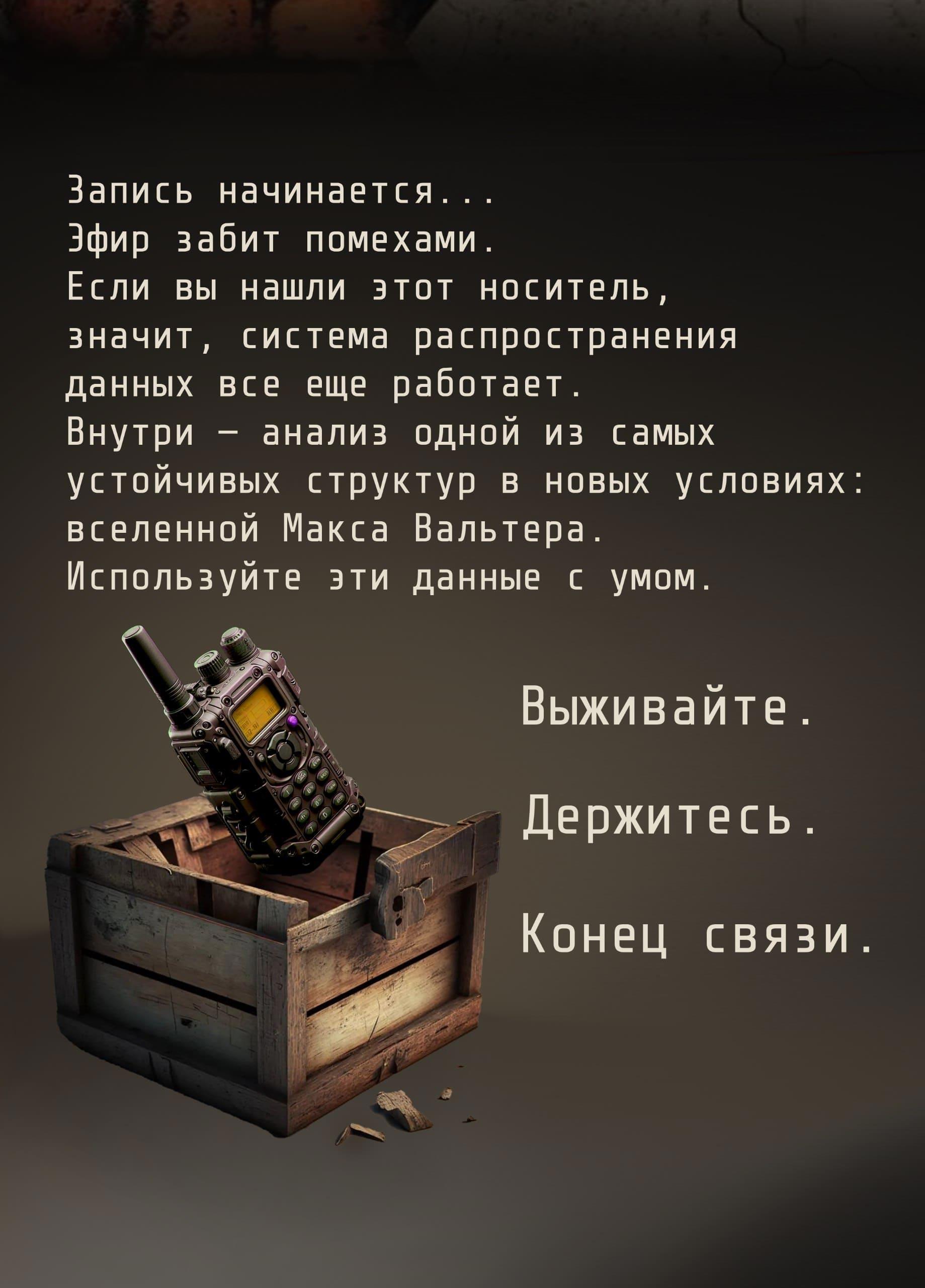 Сегодня я приглашаю вас окунуться в это путешествие вместе со мной. Нашим проводником стал сам Макс Вальтер — настоящий мастер жанра постапокалипсис и суровый знаток выживания. Его голос, записанный на старый диктофон, нашли в заброшенном бункере среди банок тушенки и патронов.