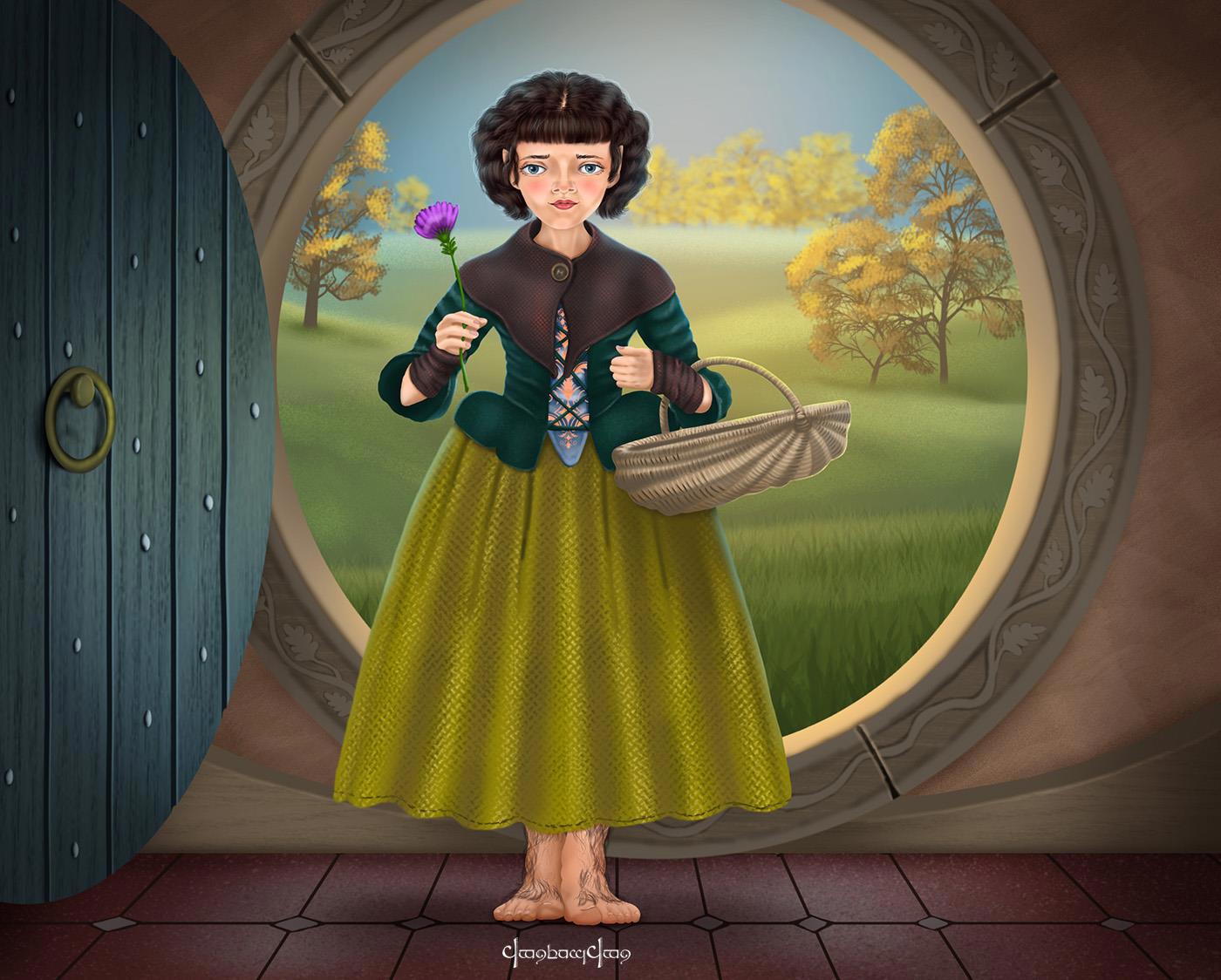 Автор: К.О. ЗлоффА мне они нравятся. Захотелось нарисовать женщин-хоббитов. Одну хотя бы. Получилось вот так: