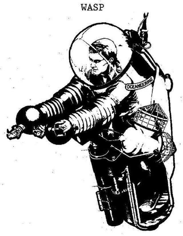 WASP - система погружения представляет собой нечто среднее между одноместным подводным аппаратом и атмосферным водолазным костюмом, поскольку имеет шарнирные руки, которые удерживают и двигаются руками оператора, а ноги оператора заключены в жёсткий корпус. Подвижность обеспечивается двумя вертикальными и двумя горизонтальными электрическими морскими двигателями, управляемыми ножным переключателем. Рабочая глубина составляет 700 м.