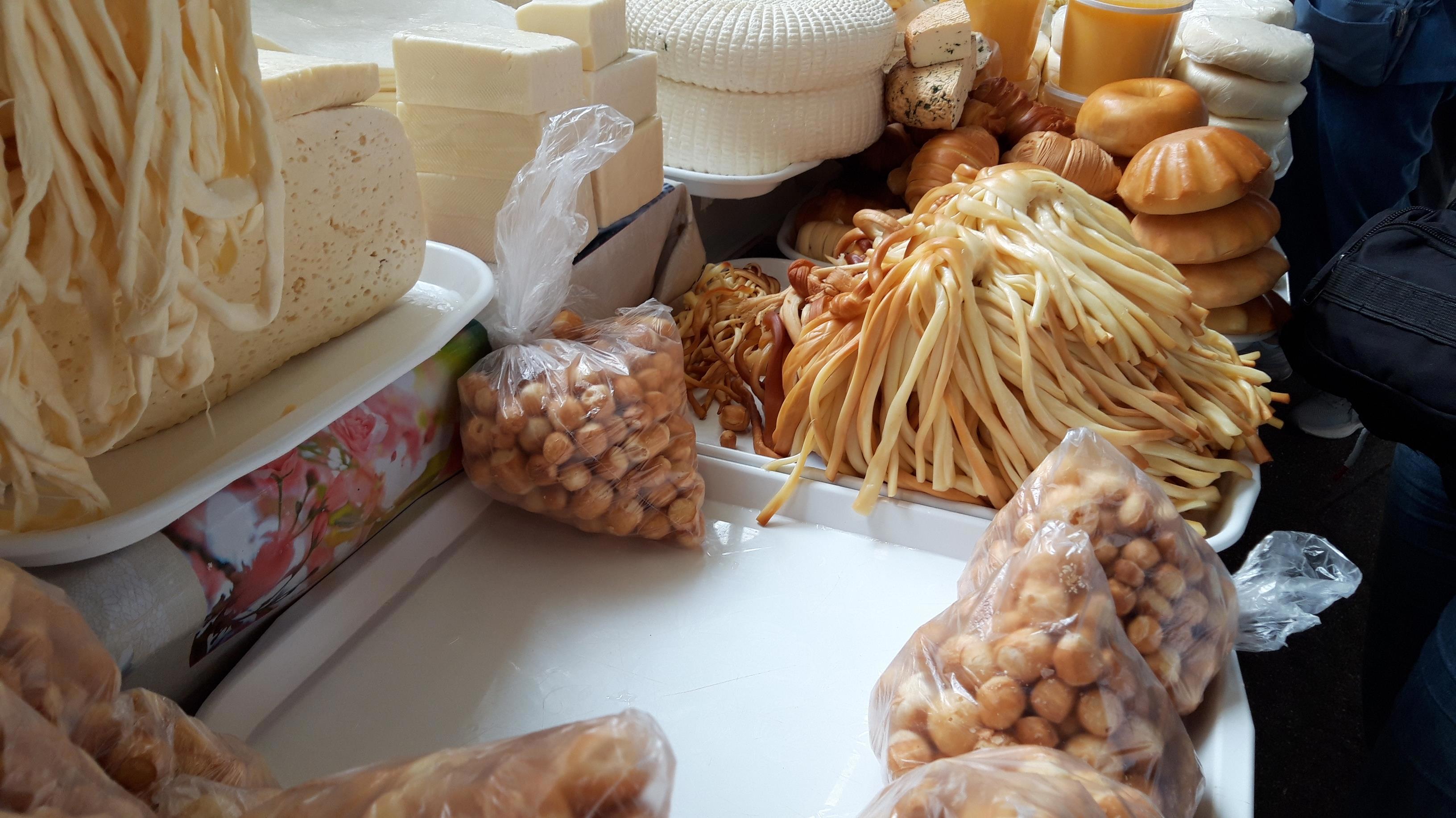 Пока из тех, на которых удалось побывать, на первом месте рынок Кисловодска. Главная его фишка — это, конечно, сыры и мясо. В первую очередь внимание на баранину, которая просто великолепна. Вариантов сыра и брынзы множество, косички, лепёшки и много чего ещё, названий которых не знаю.