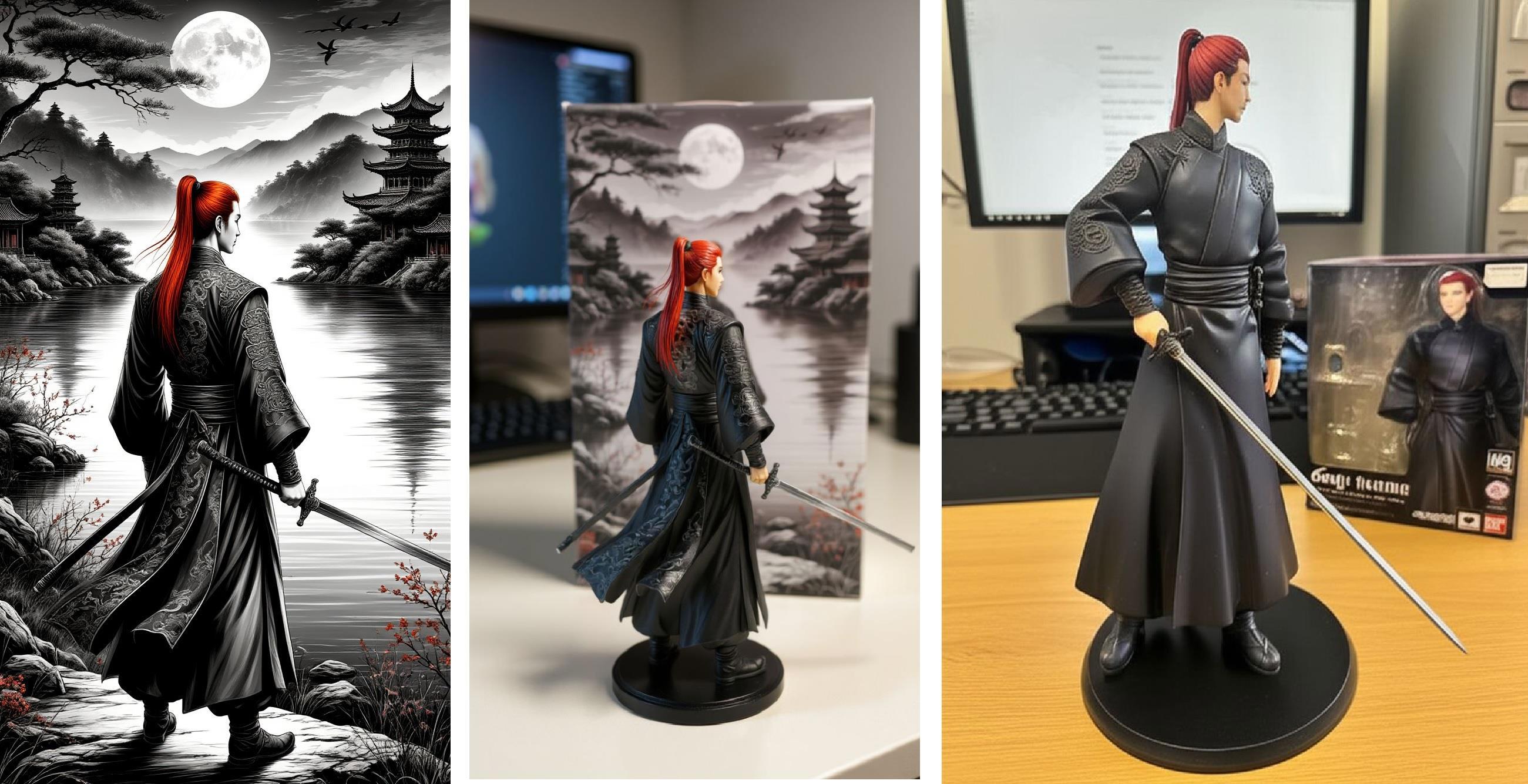 Автор: Akana againЗанятный опыт визуализации своих персонажей в 3D. Берется портрет персонажа и на его основе генерируется "фотография" коллекционной пластиковой фигурки. Примечательно, что можно даже "повернуть" лицом одного персонажа, который стоял спиной, и дорисовать другого с поясного портрета в полный рост. Сами картинки получены от Шедеврум (первая) и Copilot (вторая), а в фигурки их превратила третья сетка -- LMArena.