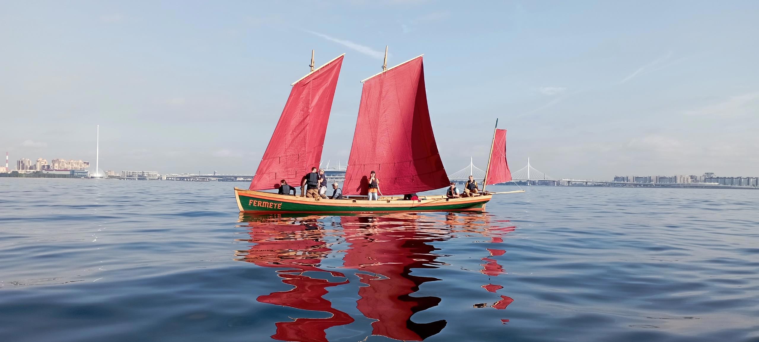 Наша гичка называется "Мечта", а это — реплика с французской (Фермете), название сохранено оригинала, т.е. в XVIII веке плавала такая вот красотка-француженка Фермете. Или ходила, если была военной. Не знаю.