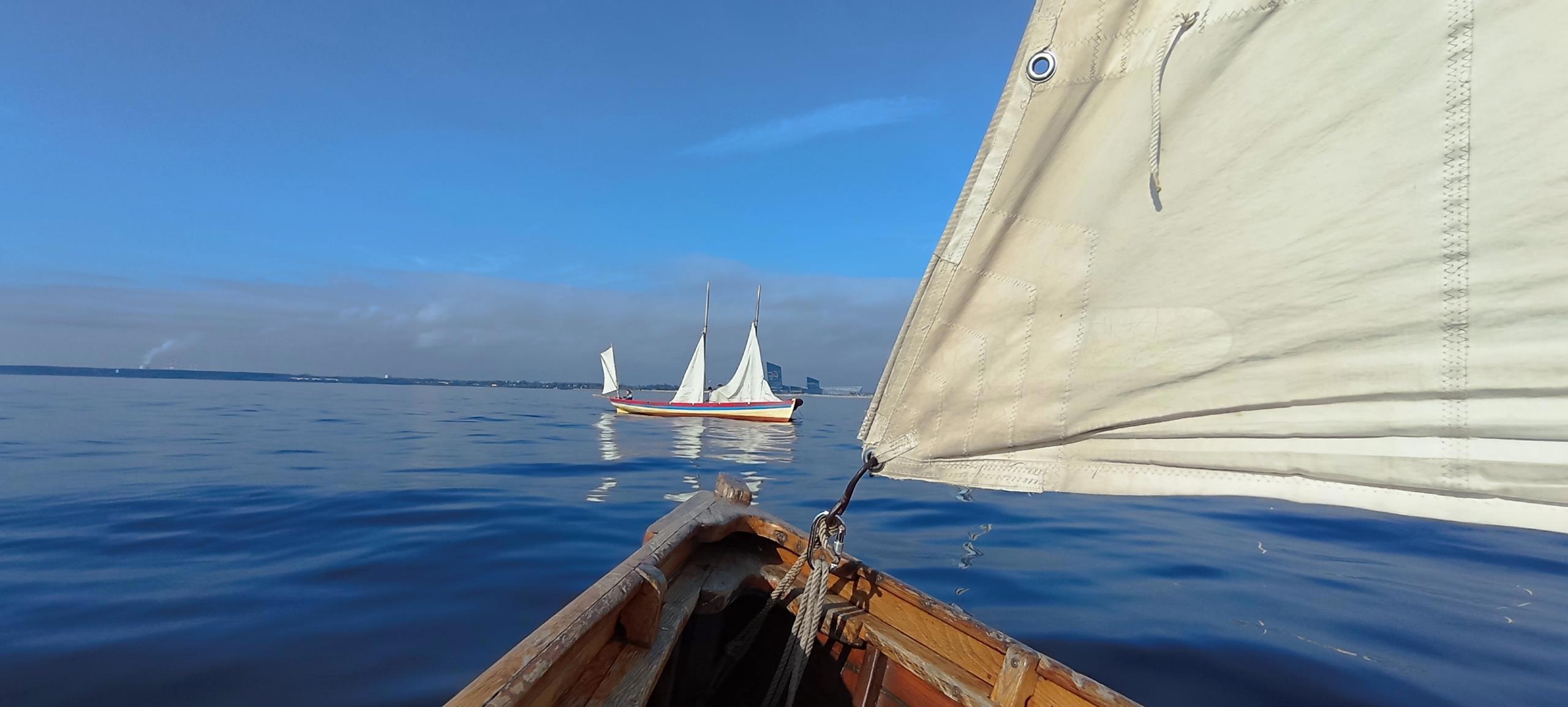 Вообще, я не первый раз хожу на гичках, хотя и не завзятый матрос, увы. Впервые вышла два года назад с меркантильной целью — написать роман "Хранитель чаек", действие которого разворачивается в Морском щите (его ещё называют Солёным архипелагом), где правит герцог Ларан. Именно на таких красотках Ларан и катал Джию и Ювину на остров Бона, показывая им, как работает цепь, заграждающая морские ворота королевства.
