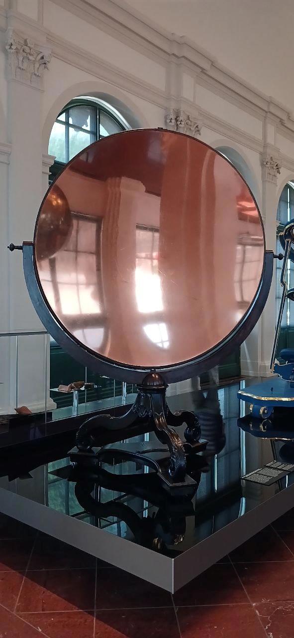Большое сферическое зеркало. Говорят, примерно таким Архимед поджигал римские корабли во время осады Сиракуз в 212 году до н.э., но как-то сомнительно. Даже в 18-м веке большие зеркала собирали из кусочкам.