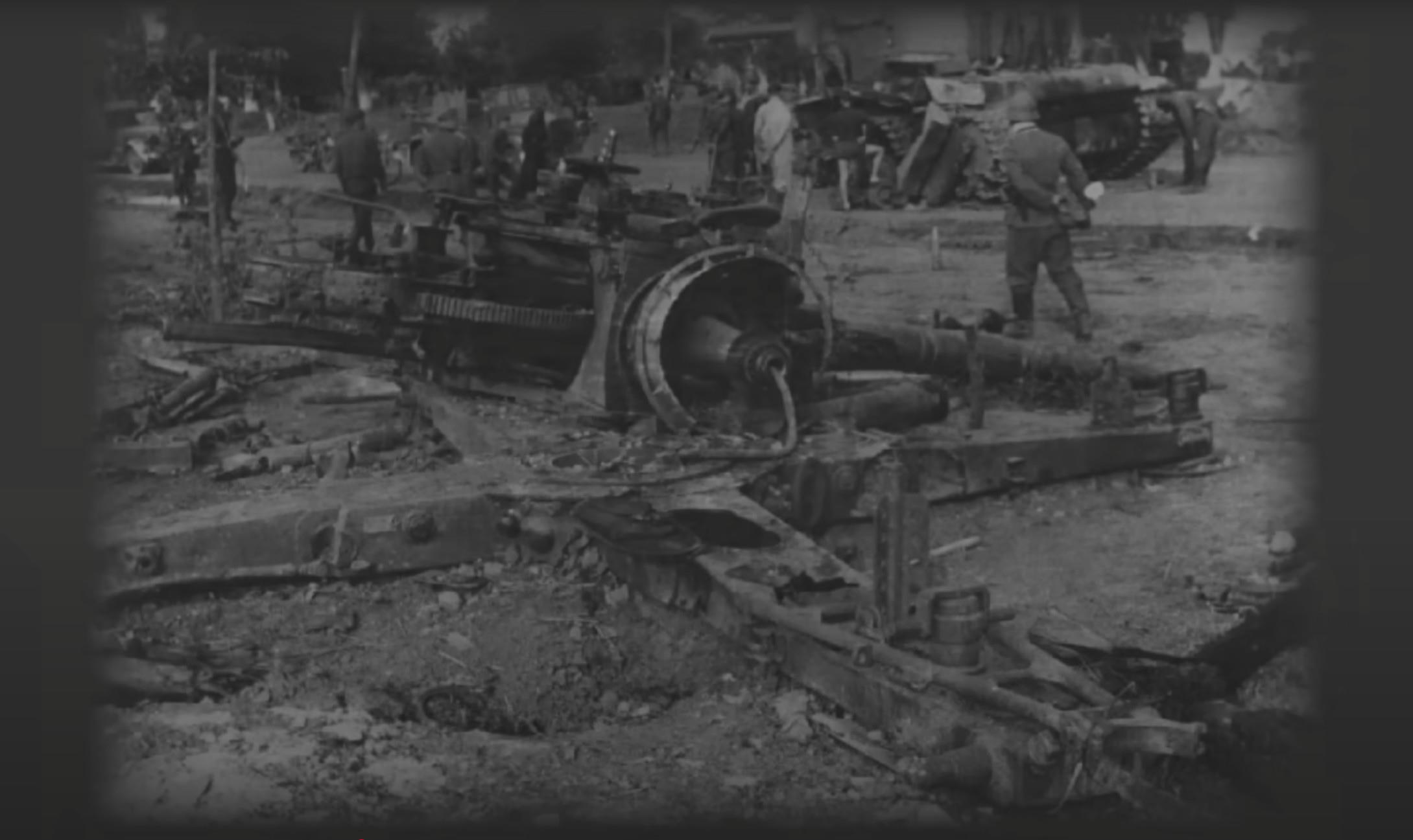 Здесь уже видно, что танкисты не зря доехали до этого места, разнесённая взрывом немецкая зенитка тому подтверждение.