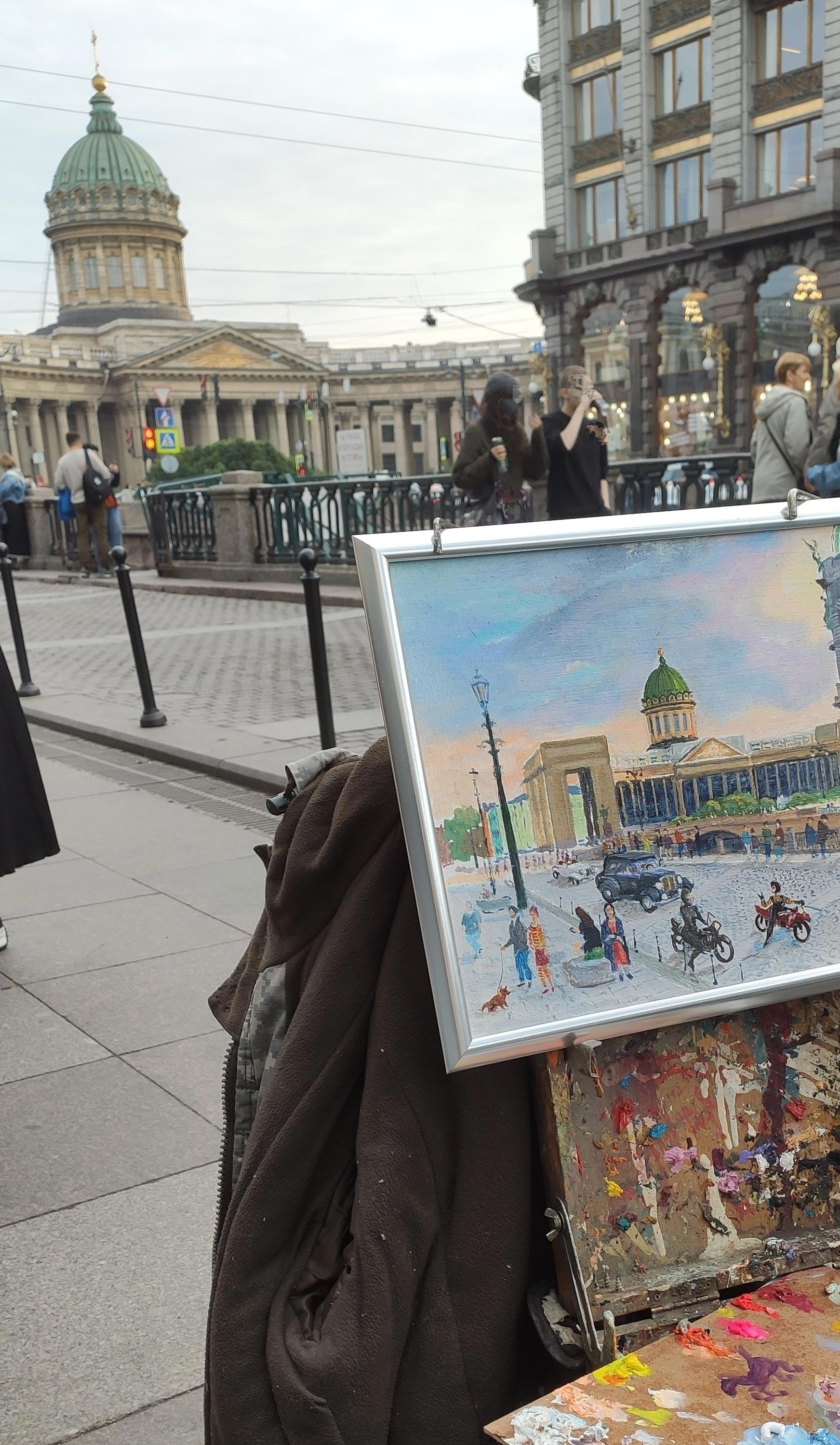 Обрезанный мной фрагмент картины кисти Евгения Бойцова на фоне Казанского собора. Фото: Алиса (6 лет)