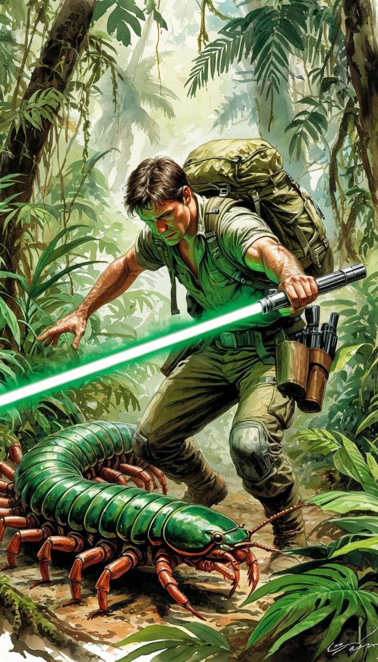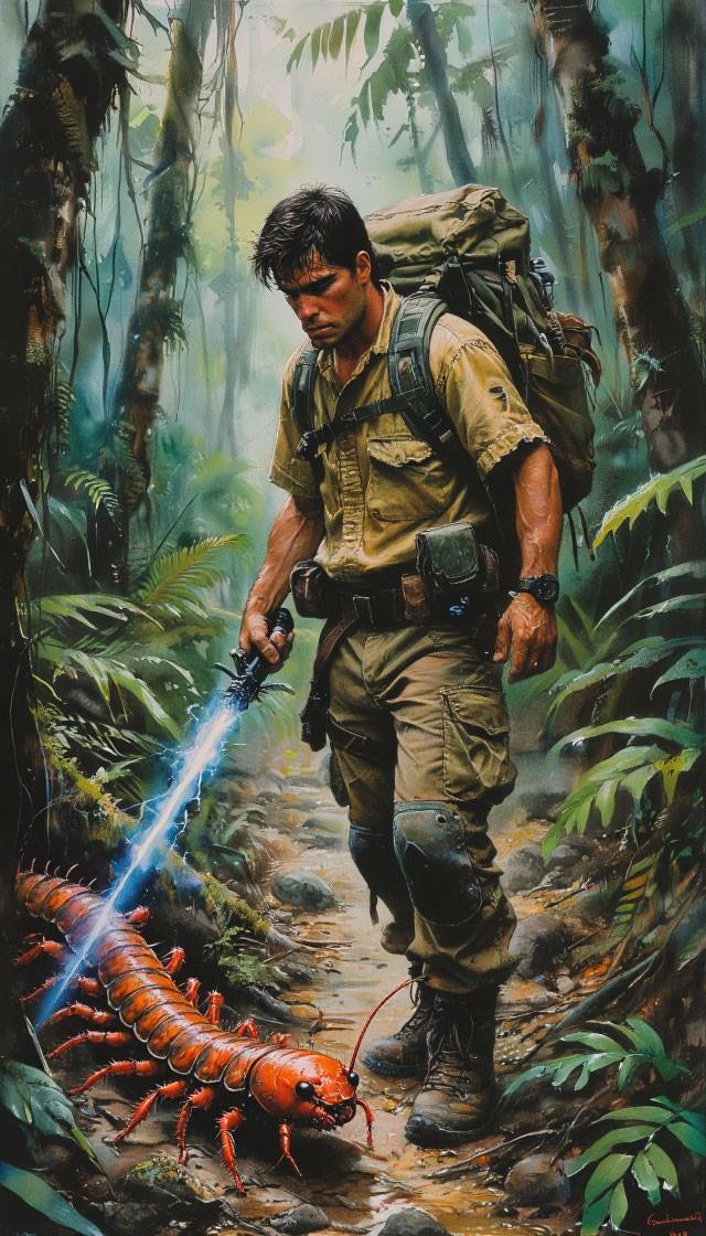 Чем история понравилась лично мне? Во-первых, весьма твердым научно-фантастическим сеттингом. Автор заморочился с матчастью, тут тебе и реальная физика, биология, география, описания процессов терраформирования и социального устройства эволюционировавших насекомых. Во-вторых, антураж и атмосфера. Это история о человеке, который остался один на планете в далеком-далеком будущем, в джунглях Амазонии, которые и сейчас могут запросто убить даже подготовленного человека, а через сто тысяч лет стали еще опаснее. И он в одиночку исследует новый мир, на каждом шагу сталкиваясь с опасностями и приключениями. ГГ помогают биотехнологии Галактомицелия, но впереди путь длиной в столетия и препятствия в виде эволюционировавшей фауны и инсектоидной инопланетной расы, которая тоже заявила свои права на Землю. Лично мне во время чтения история напомнила немногословный "Блэйм!" Цутому Нихея, хотя там действующих лиц на порядок больше.