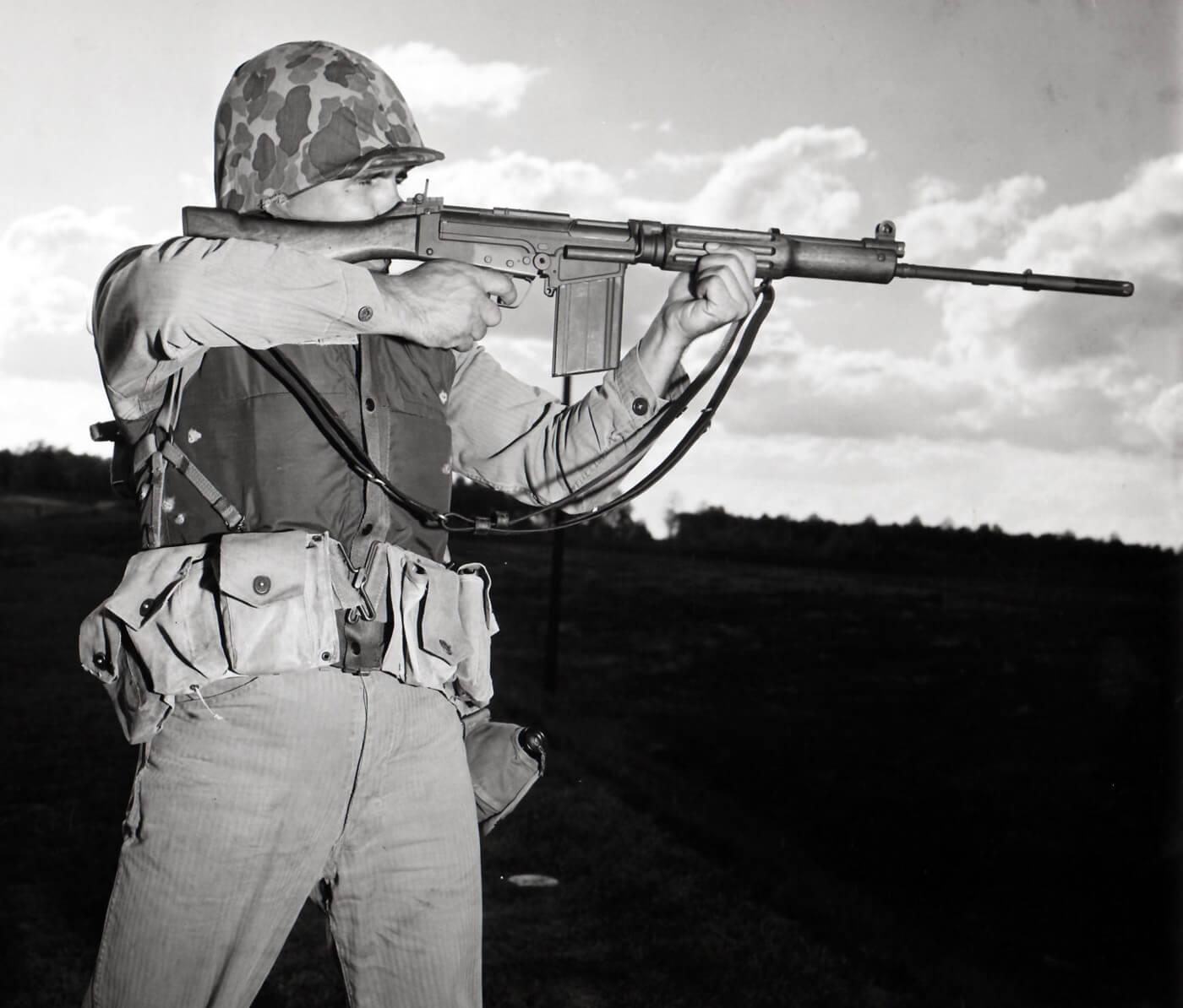 Например, «гаранд» не имел режима стрельбы очередями. Между тем, некоторые офицеры полагали, что если научить «гаранд» вести полностью автоматический огонь, да еще приспособить к нему 20-типатронные магазины от ручного пулемета BAR M1918, то более тяжелый ручник можно будет и убрать. Впрочем – мечтать так мечтать! – новая винтовка могла бы заменить «гаранд», BAR, M1 Carbine, пистолеты-пулеметы, иметь меньший, не более 7 фунтов, вес и габариты за счет складного приклада. И да, хорошо бы и при этом сохранить не менее 85% преемственности с уже производимым М1.