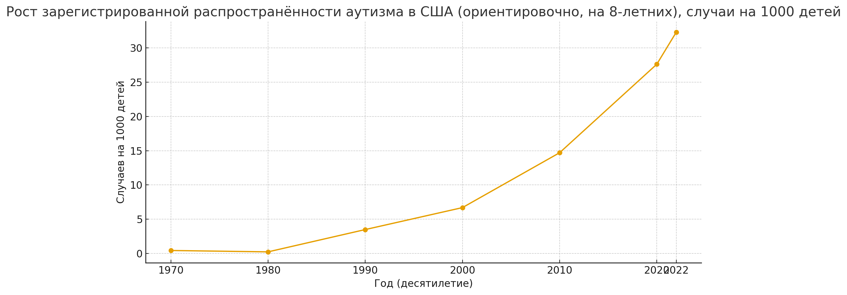 По версии Минздрава США виноват парацетамол. Я не ученый медик, я экономист – но для меня эта версия выглядит обоснованно. В отличии от предыдущей версии – когда в аутизме обвиняли прививки. Дело тут в том, что прививки вводятся одномоментно. Сразу по городу, региону, стране. Тогда как рост заболеванием аутизмом нарастал постепенно, что никак не вяжется со ступенчатым ростом графика ввода прививок.