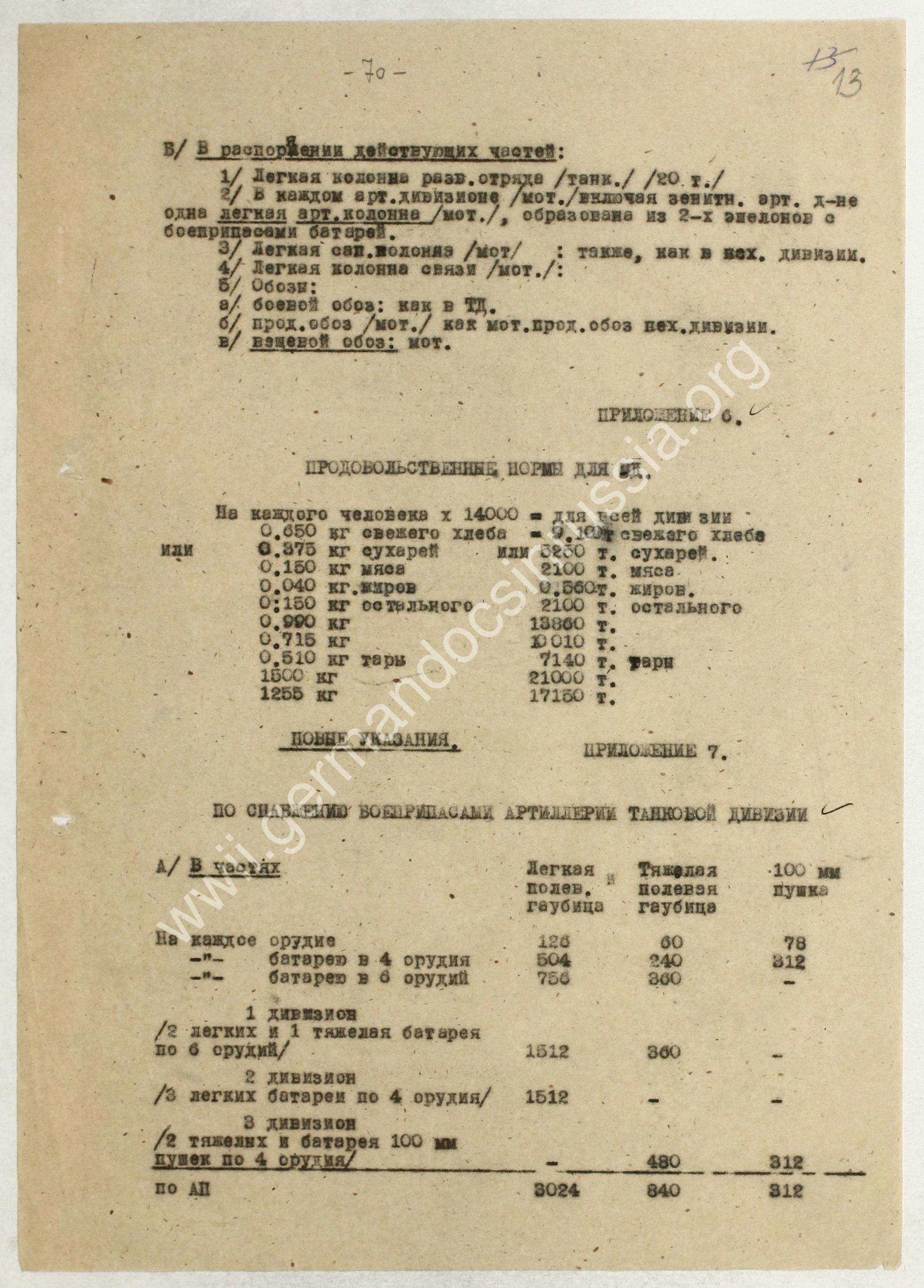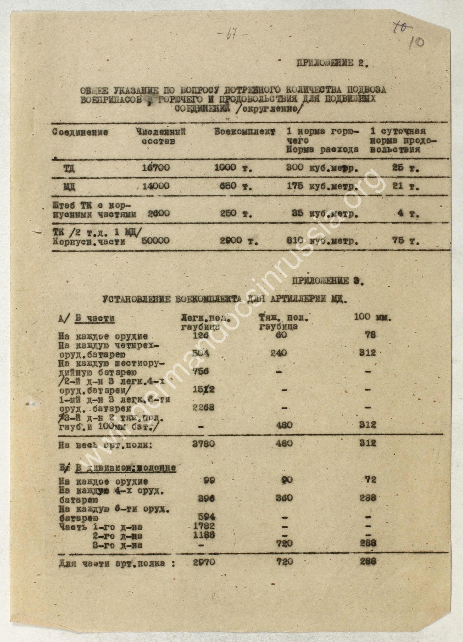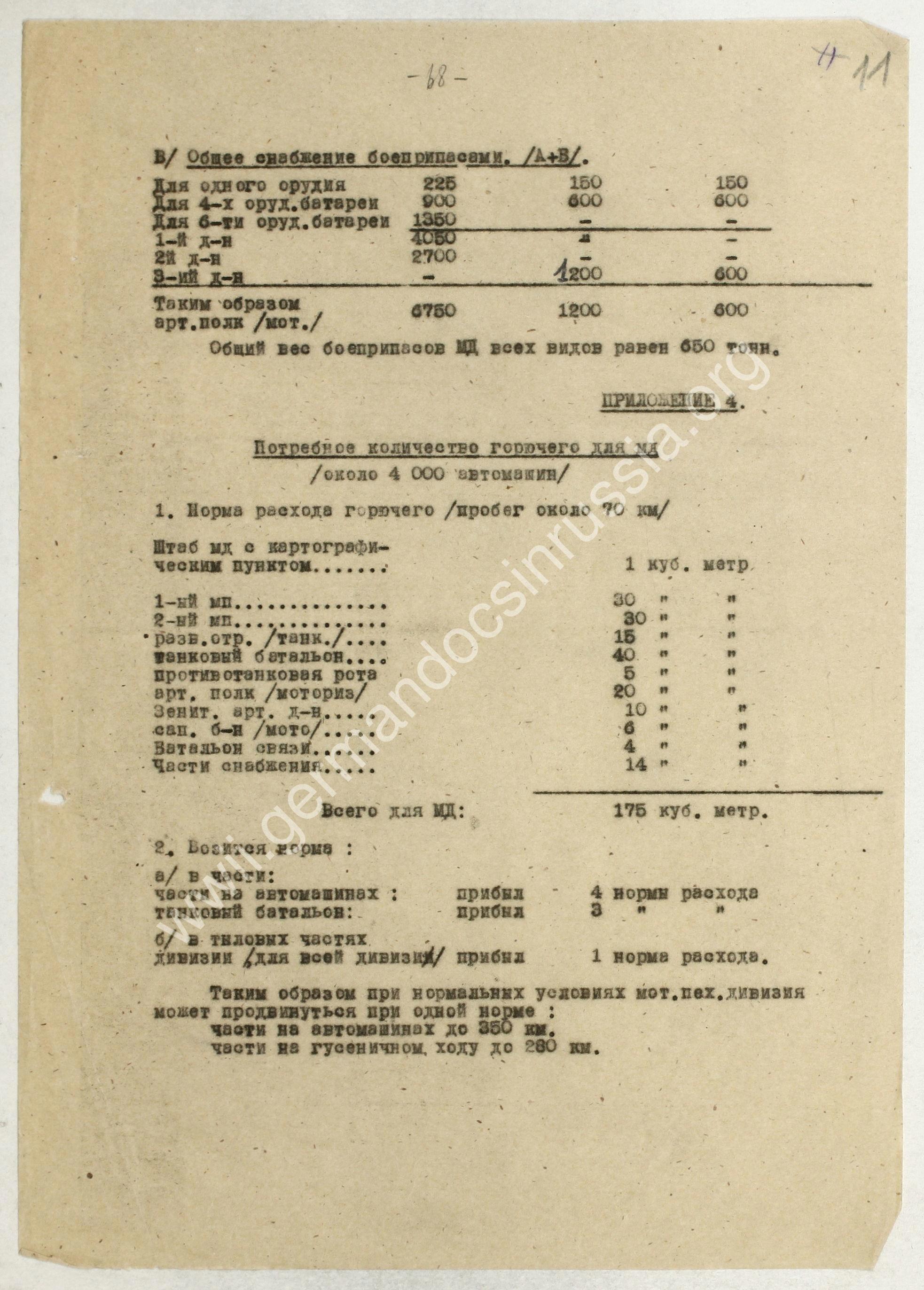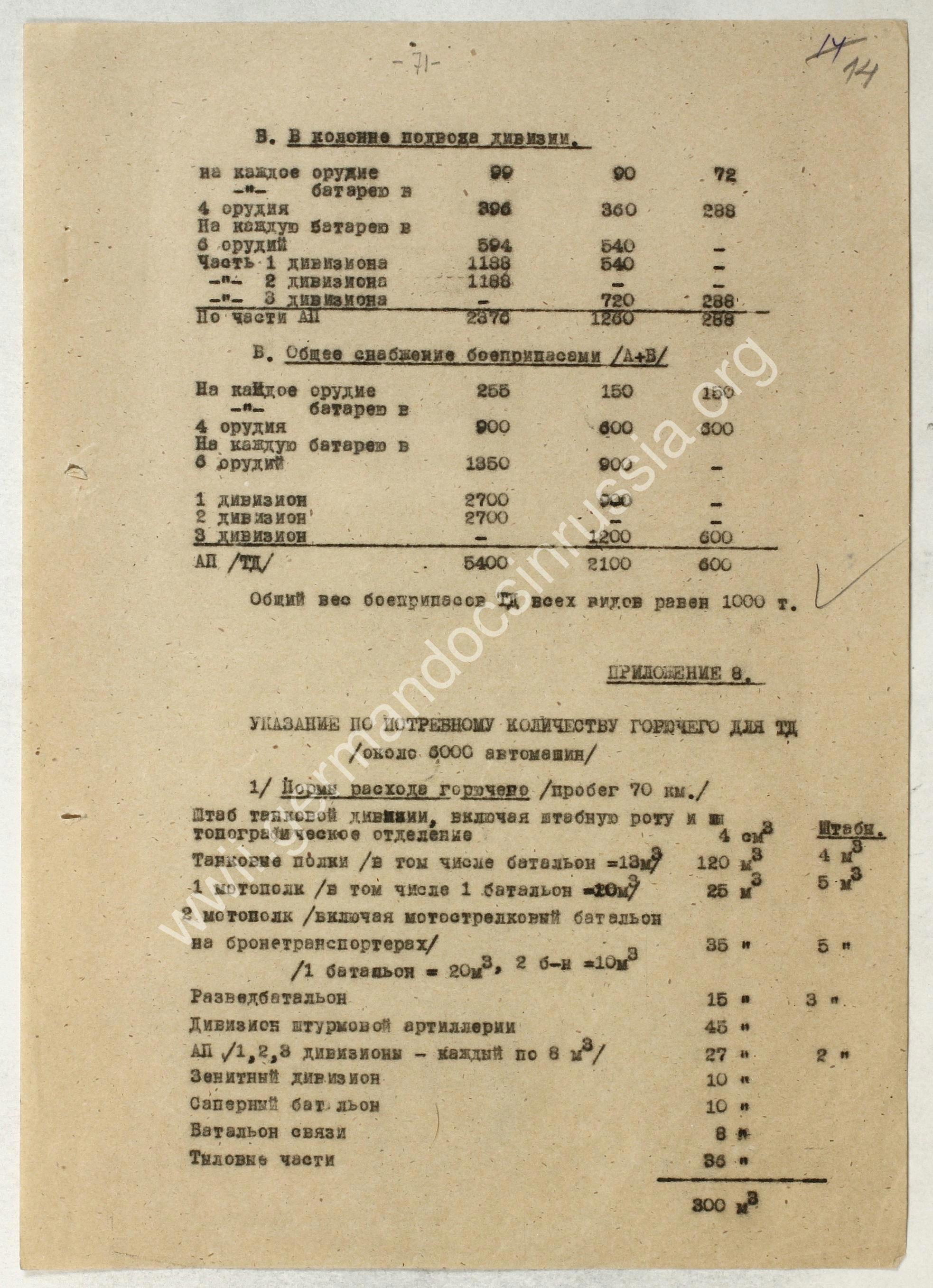 Общие указания по вопросу потребного количества боеприпасов, горючего и продовольствия для подвижных соединений.