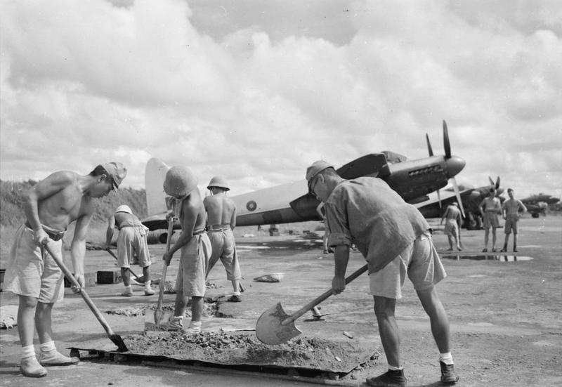 Японские военнопленные под британским надзором ремонтируют посадочную полосу аэропорта в Сайгоне, 1945 год