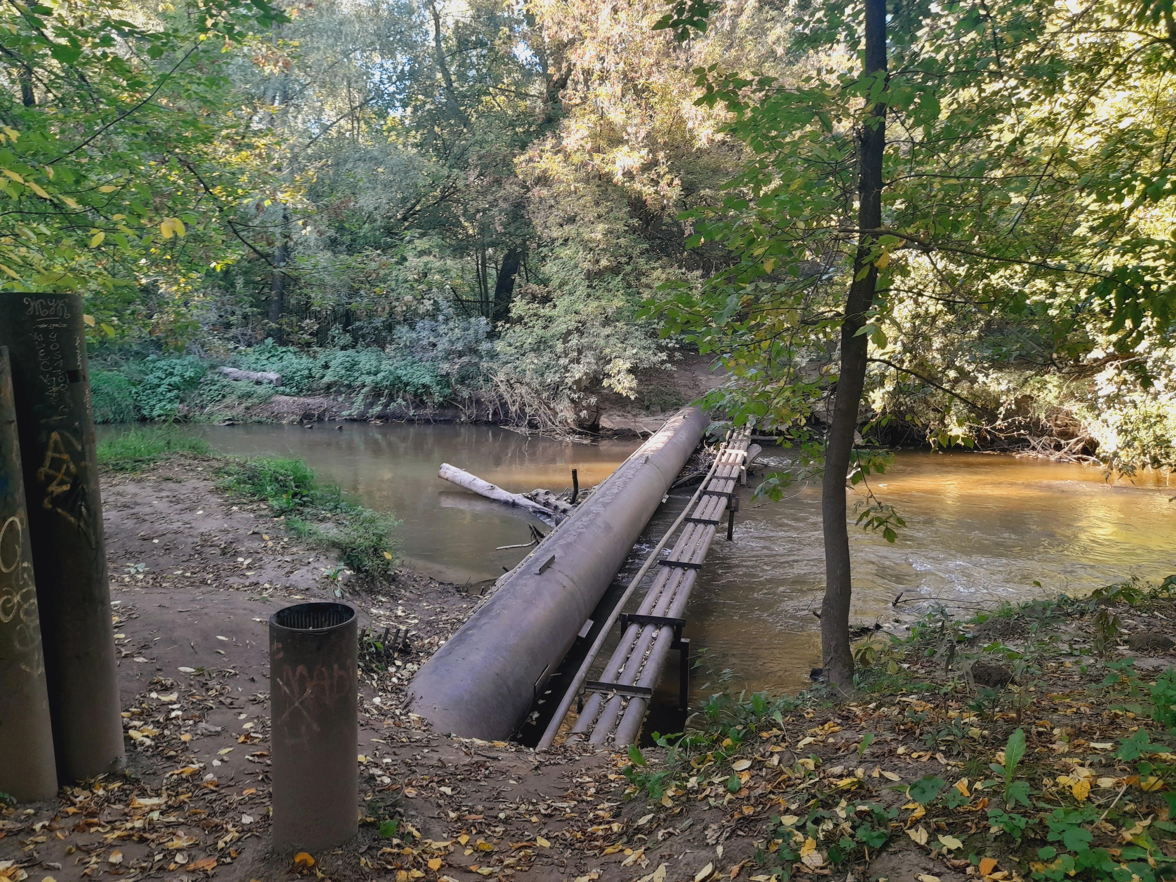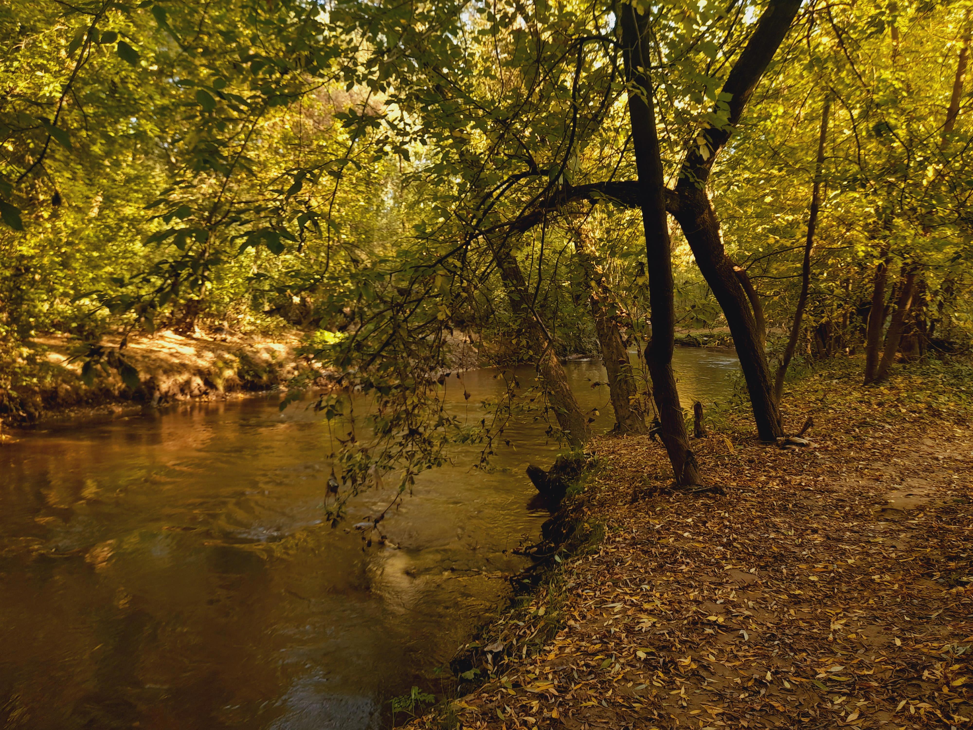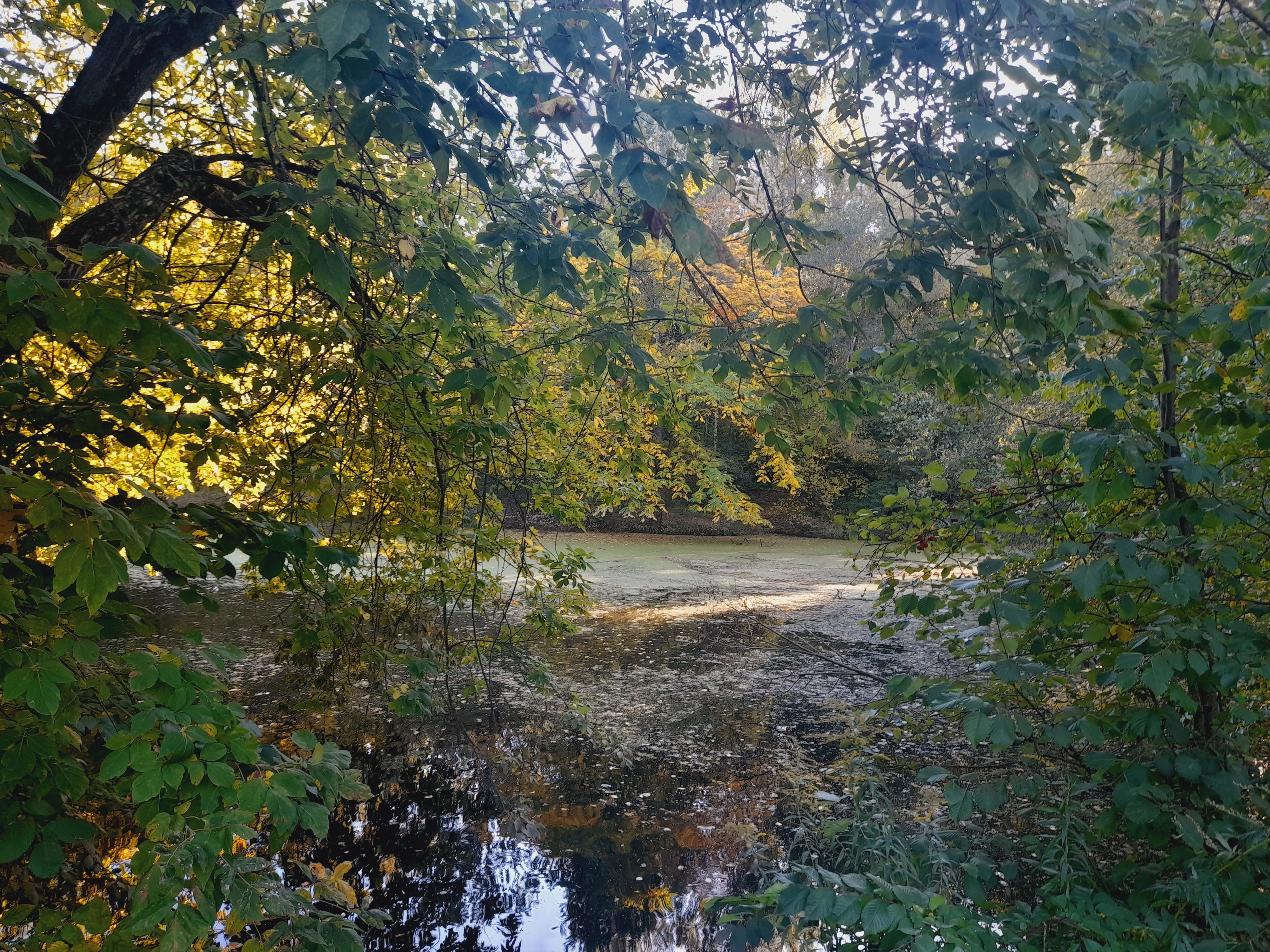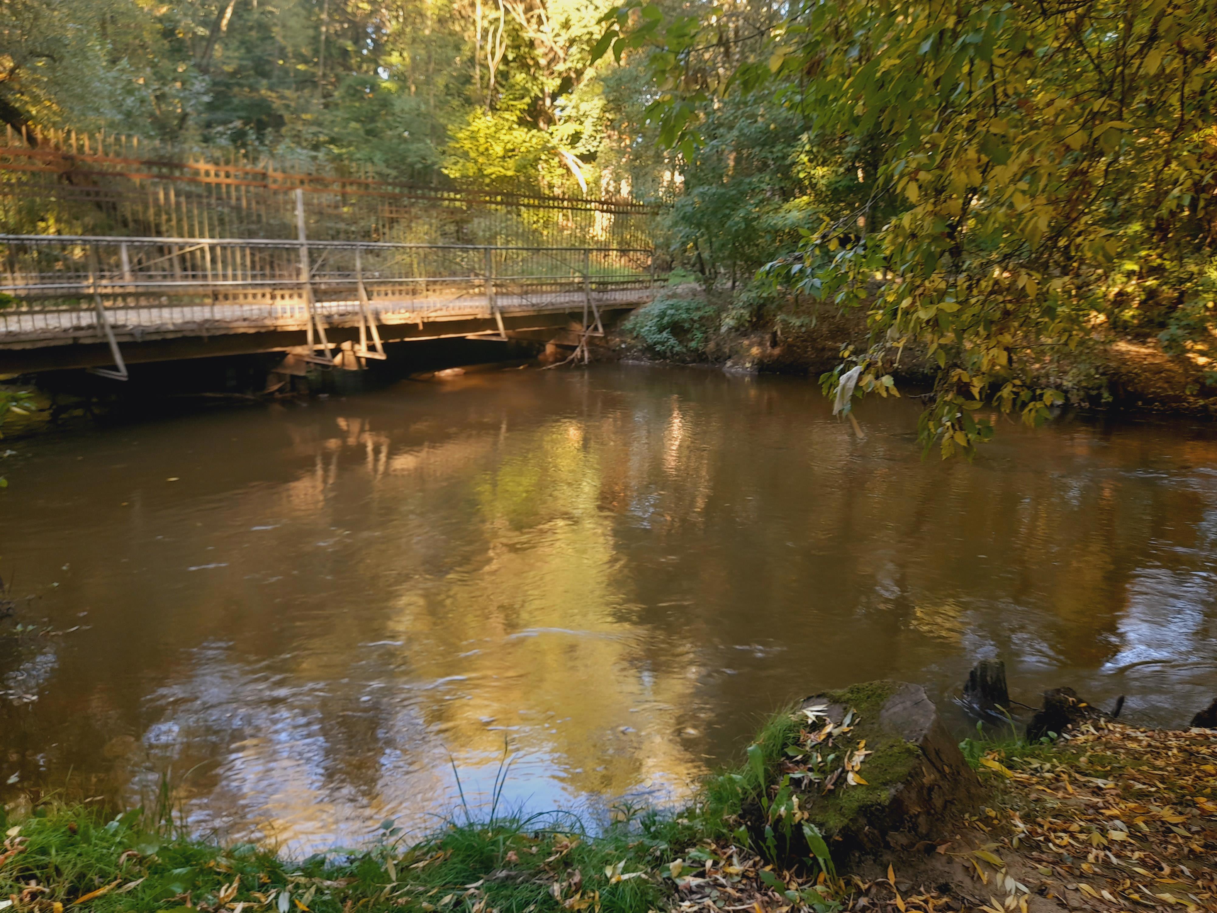 А дальше я дошла до ворот сада Фондовой оранжереи, до реки и пруда.