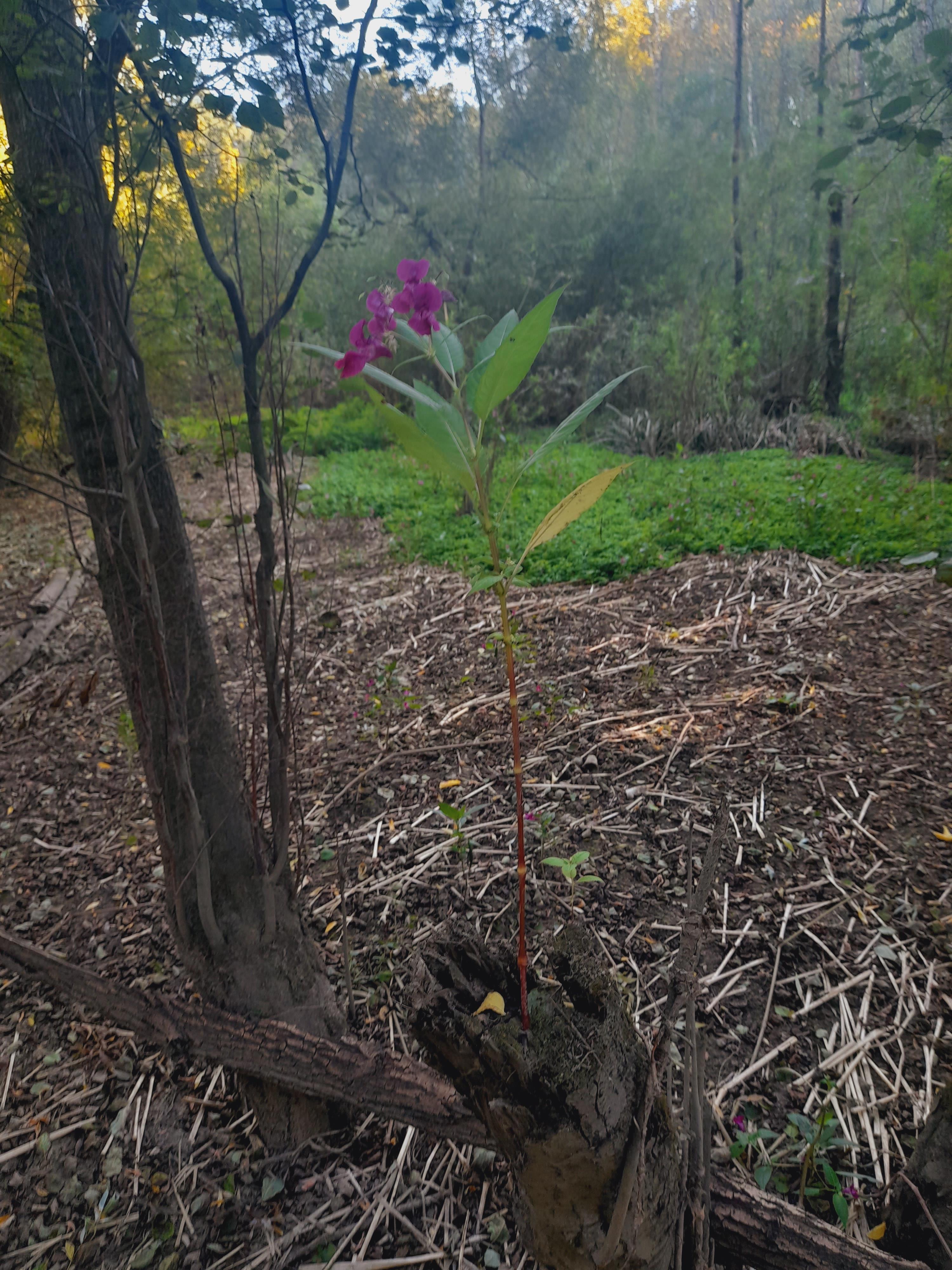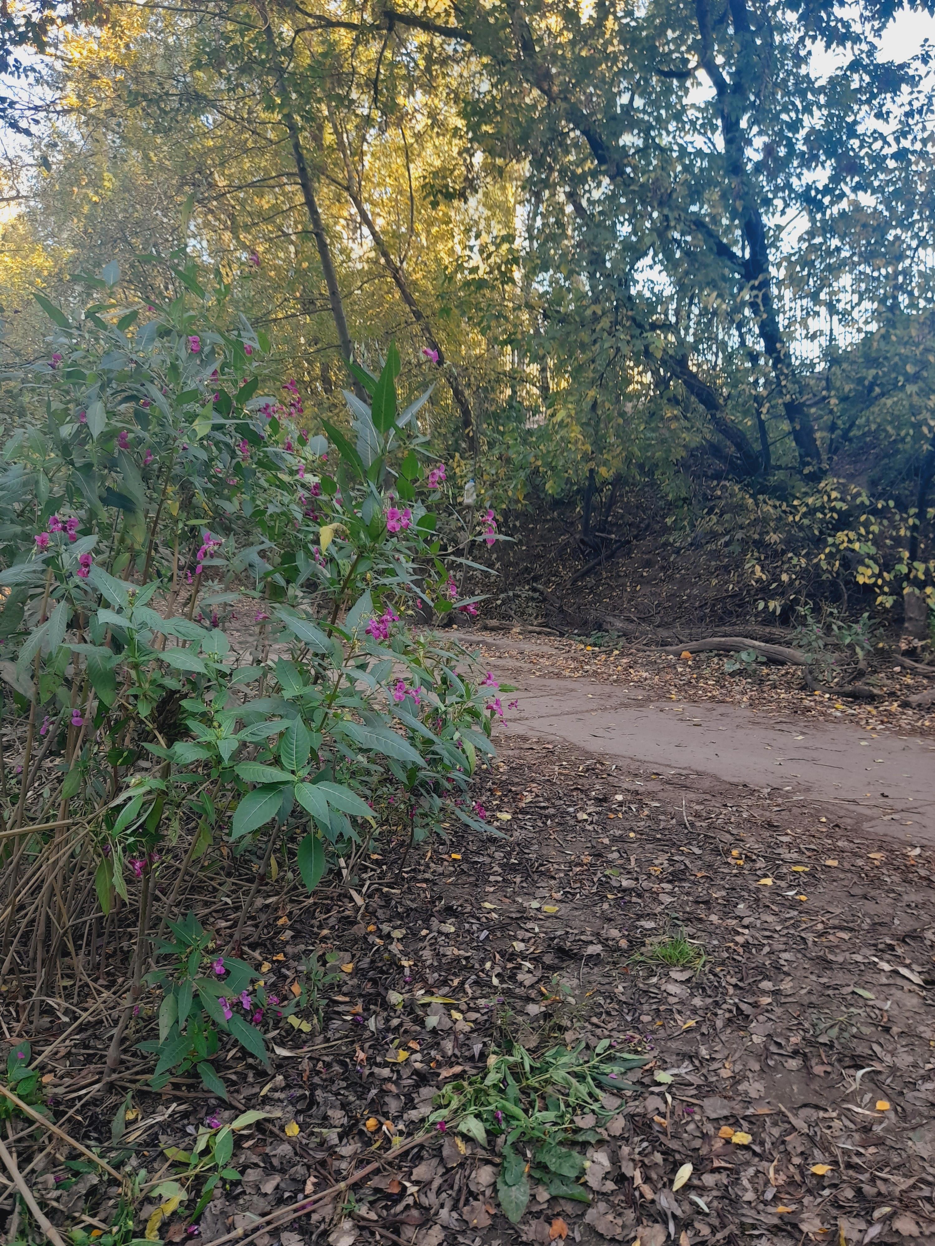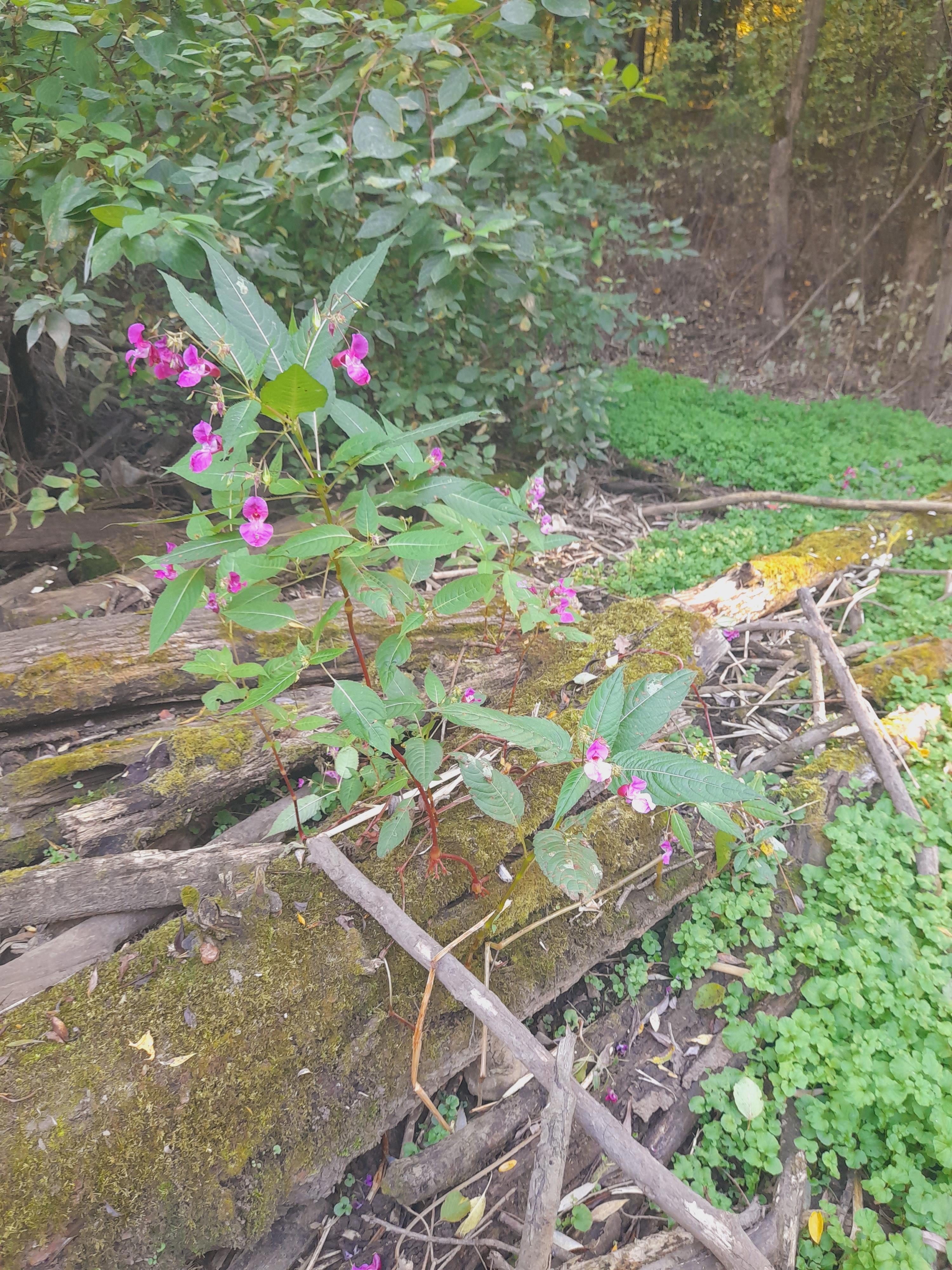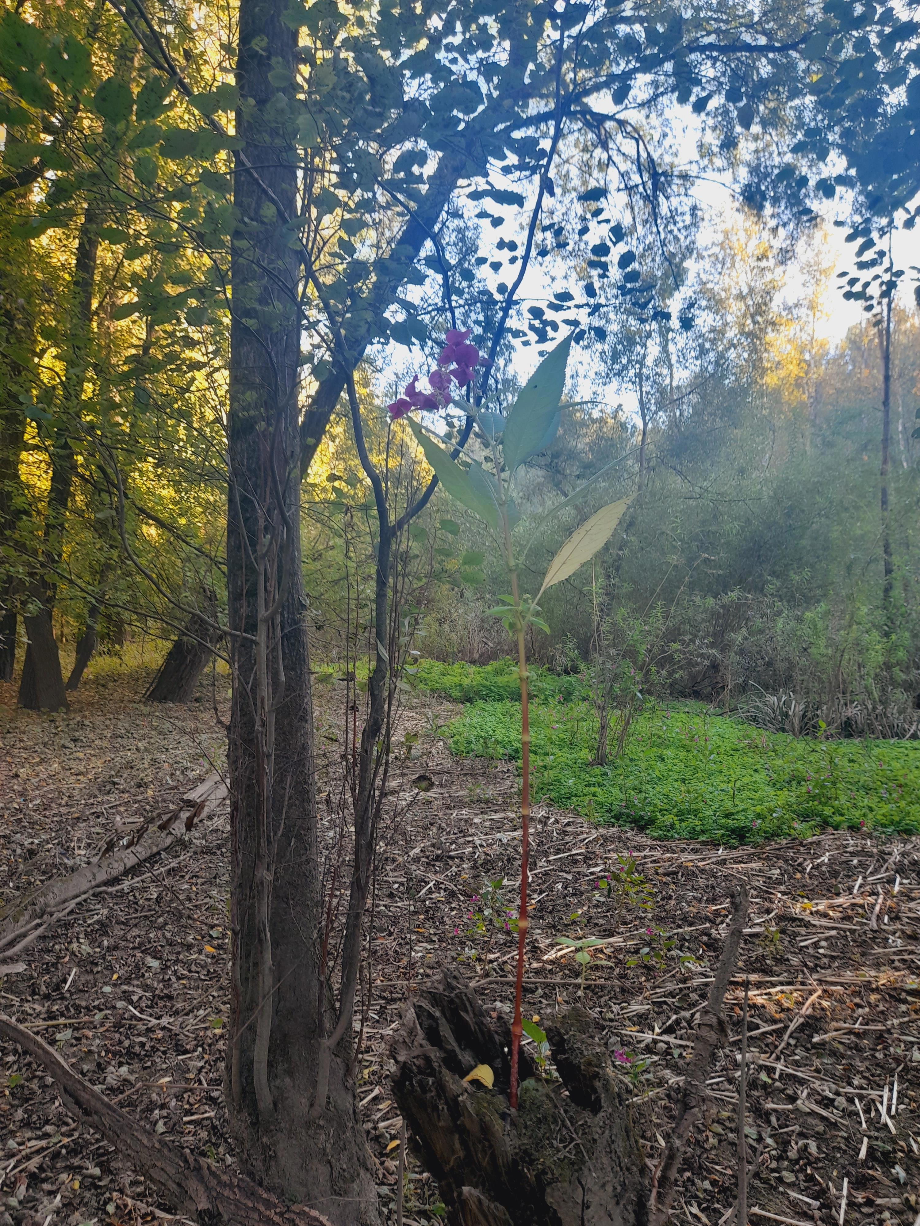 Дальше я двинулась по тропе вдоль Лихоборки. Всюду заросли бальзаминов. Вот этот вырос из пенька))
