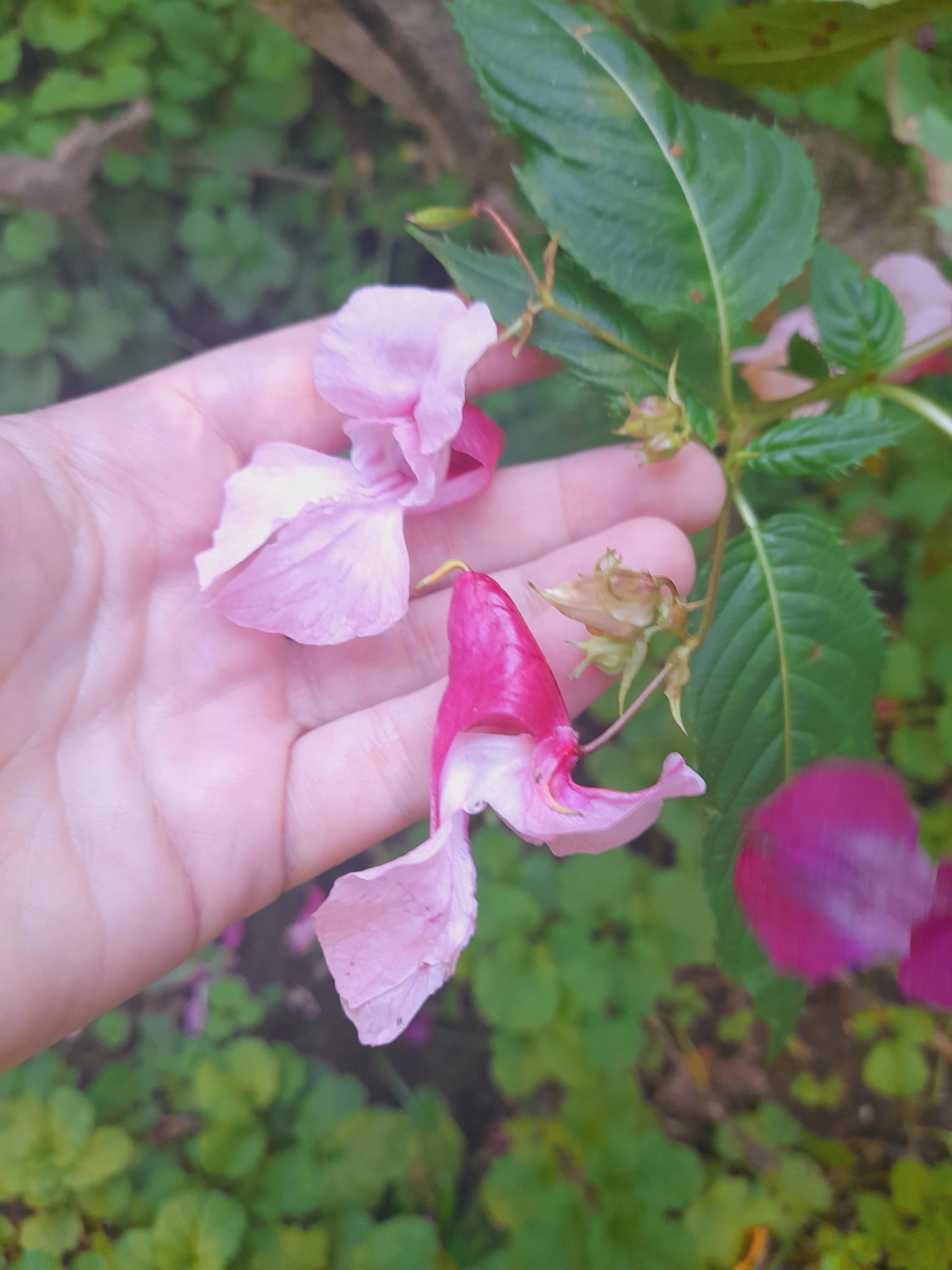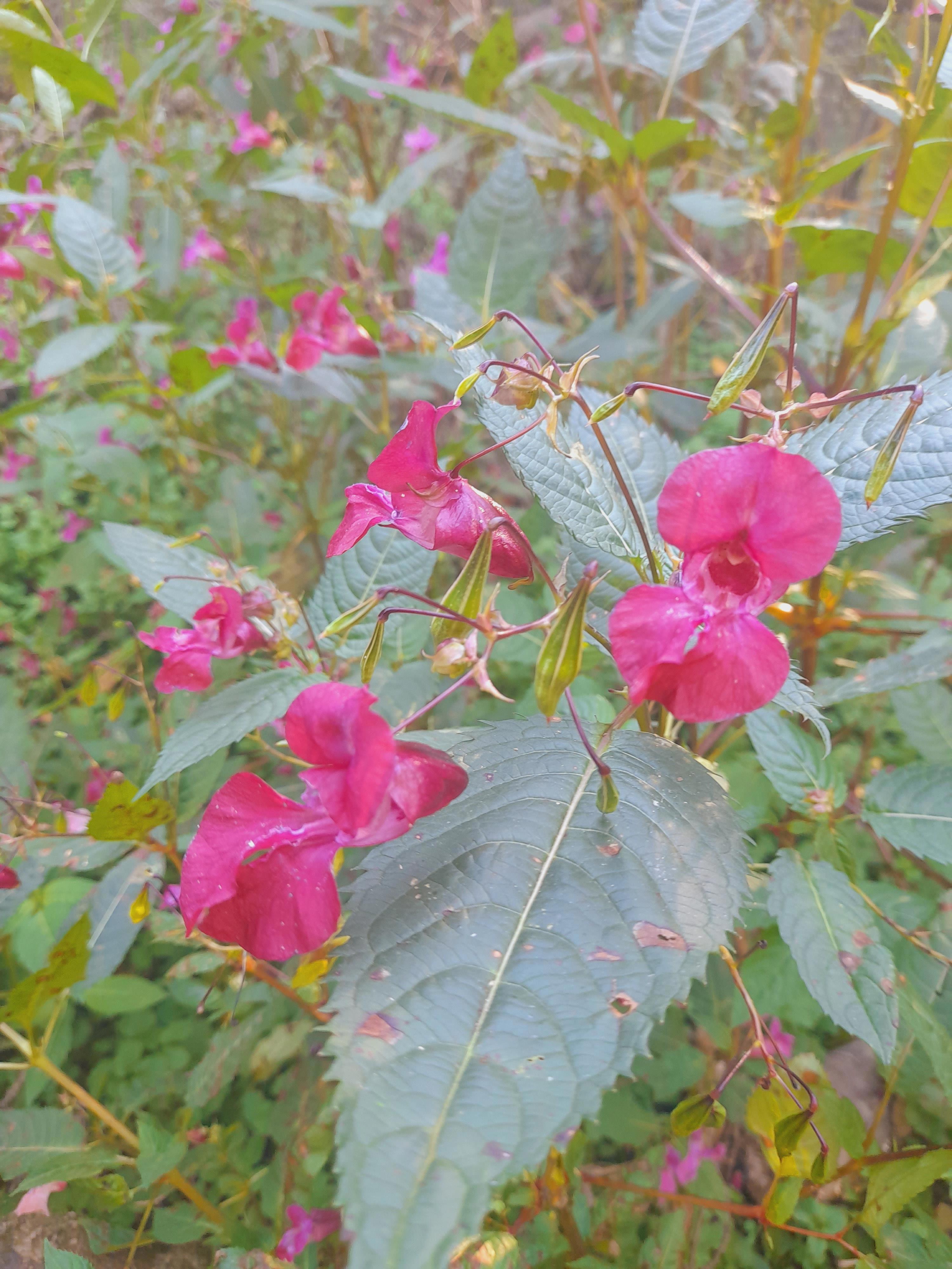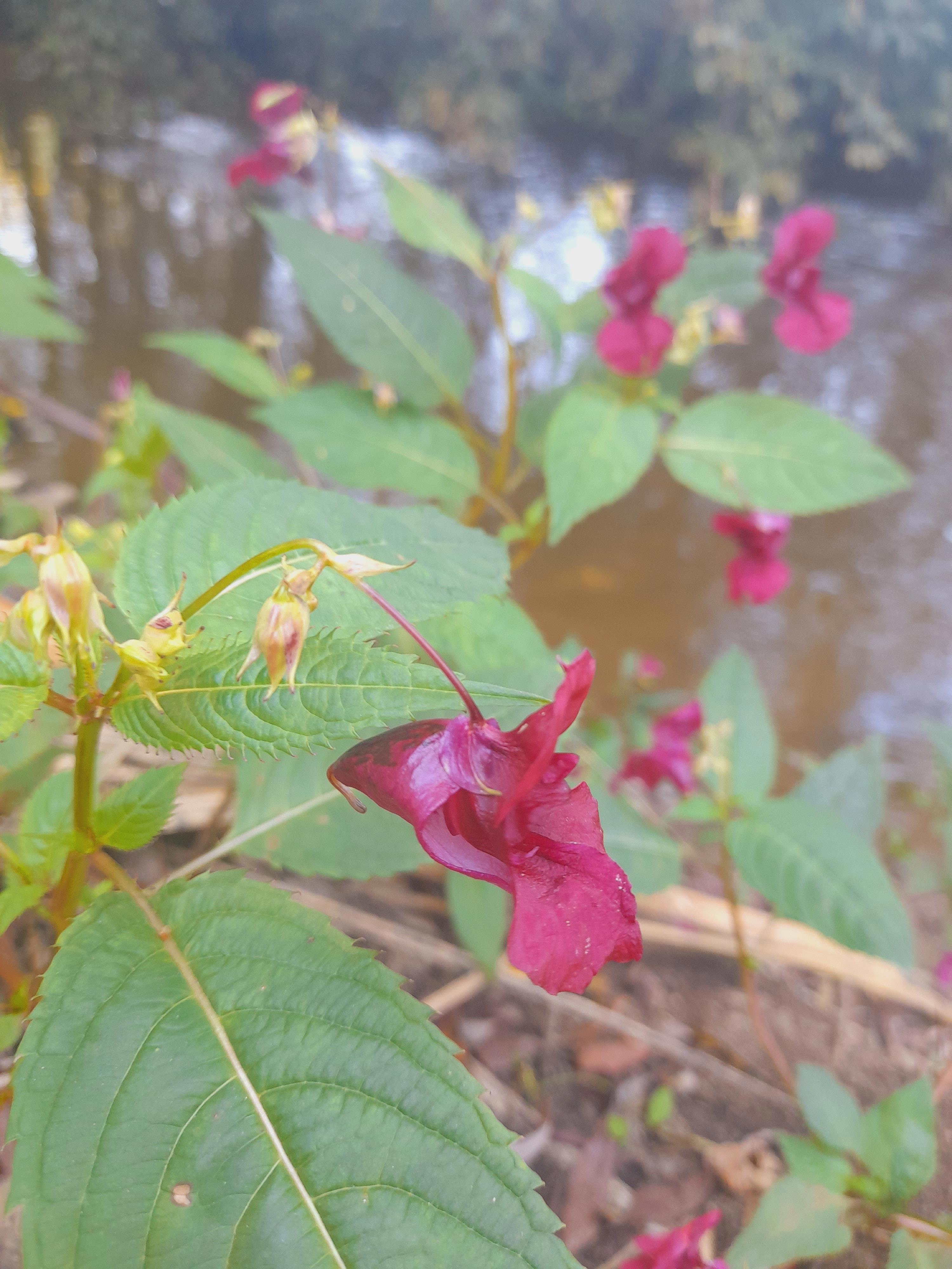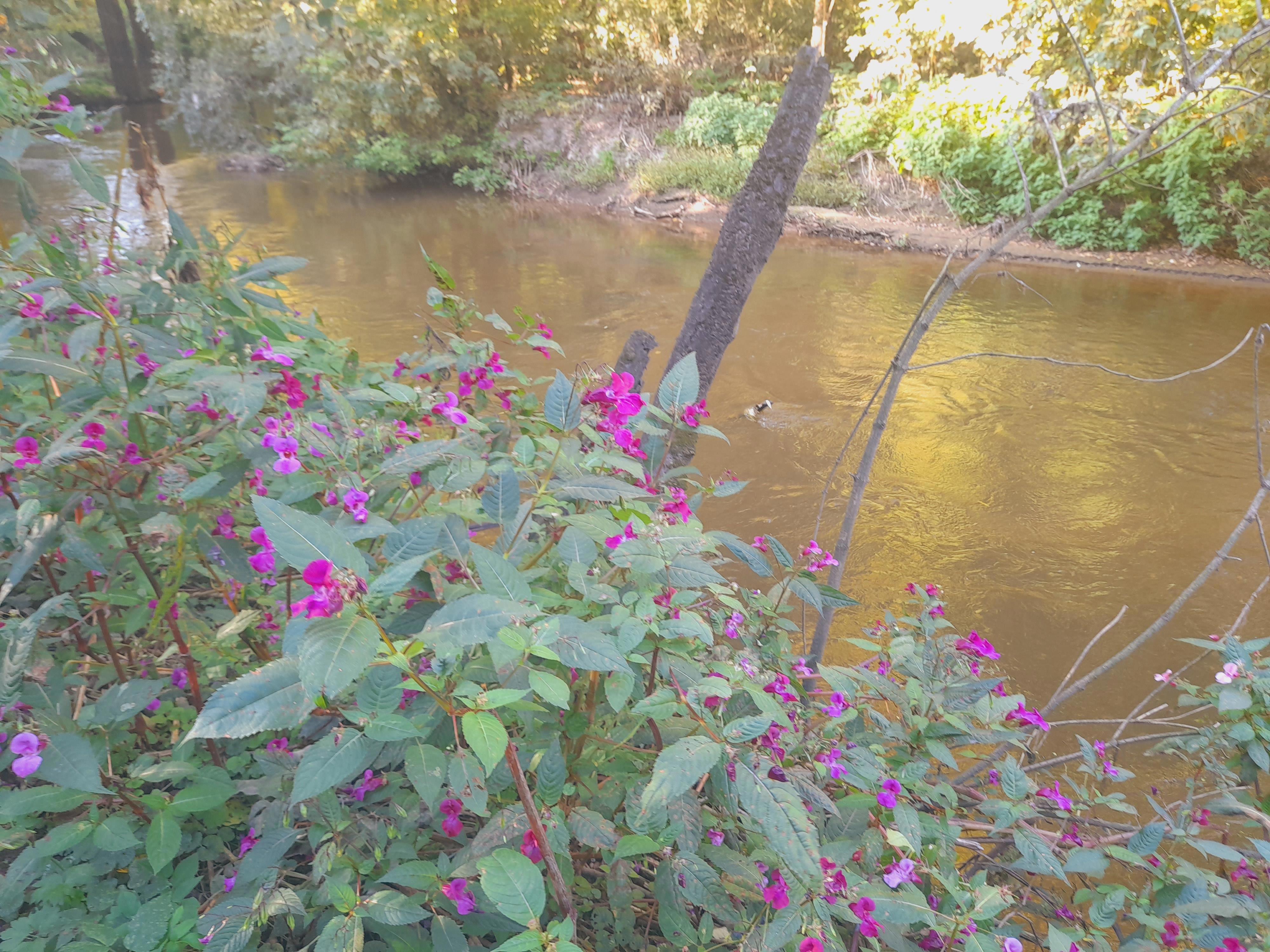 Дальше я двинулась по тропе вдоль Лихоборки. Всюду заросли бальзаминов. Вот этот вырос из пенька))