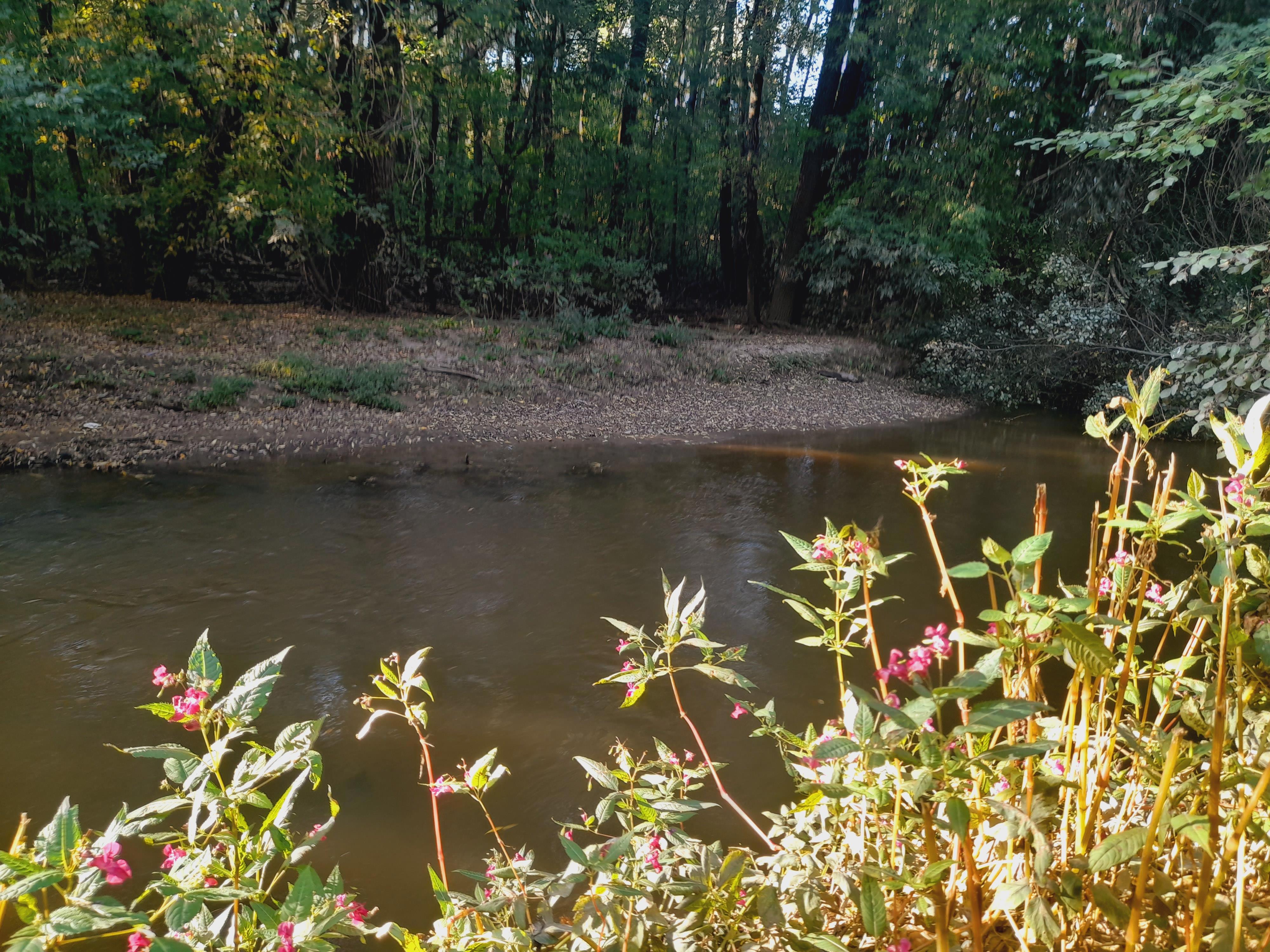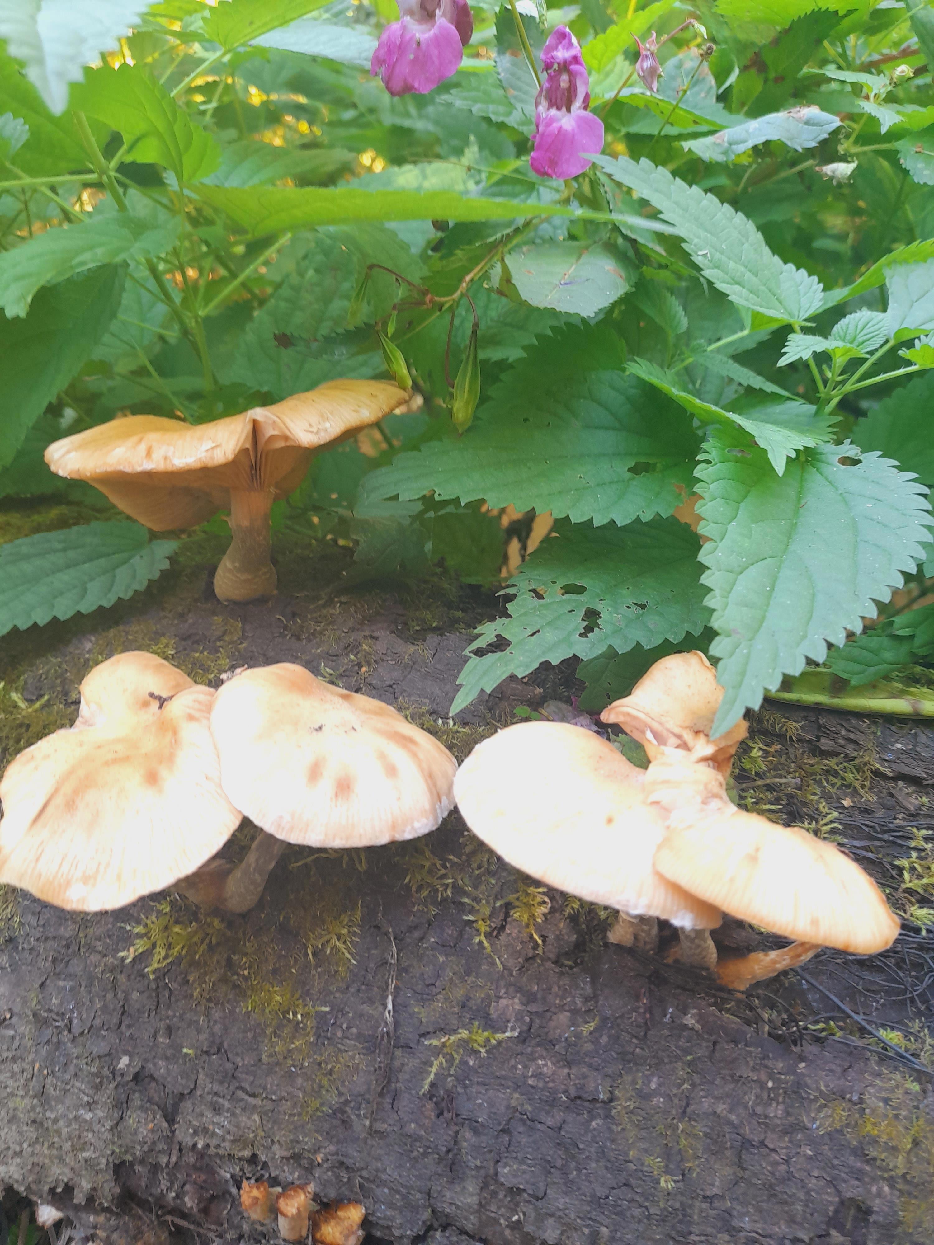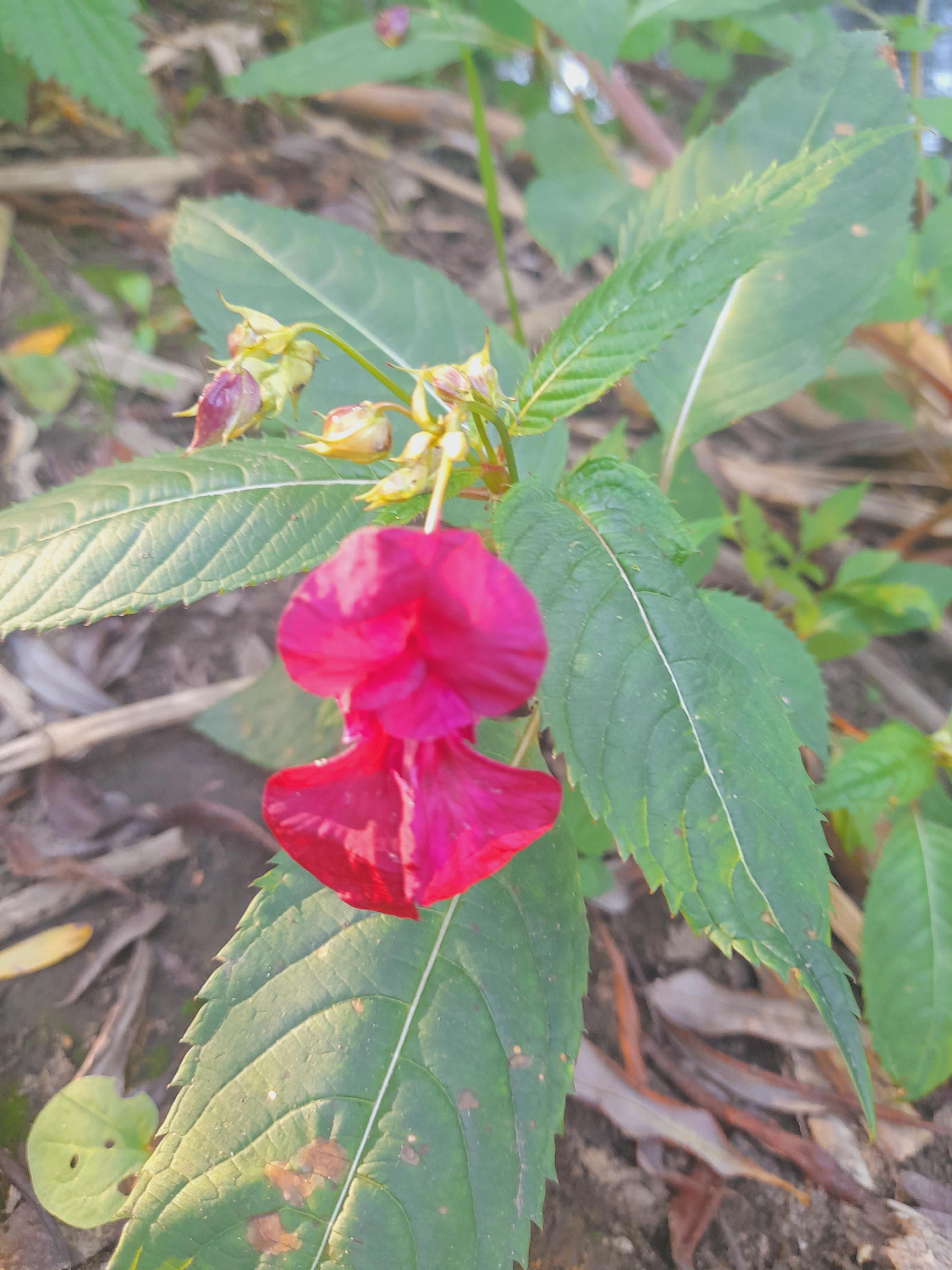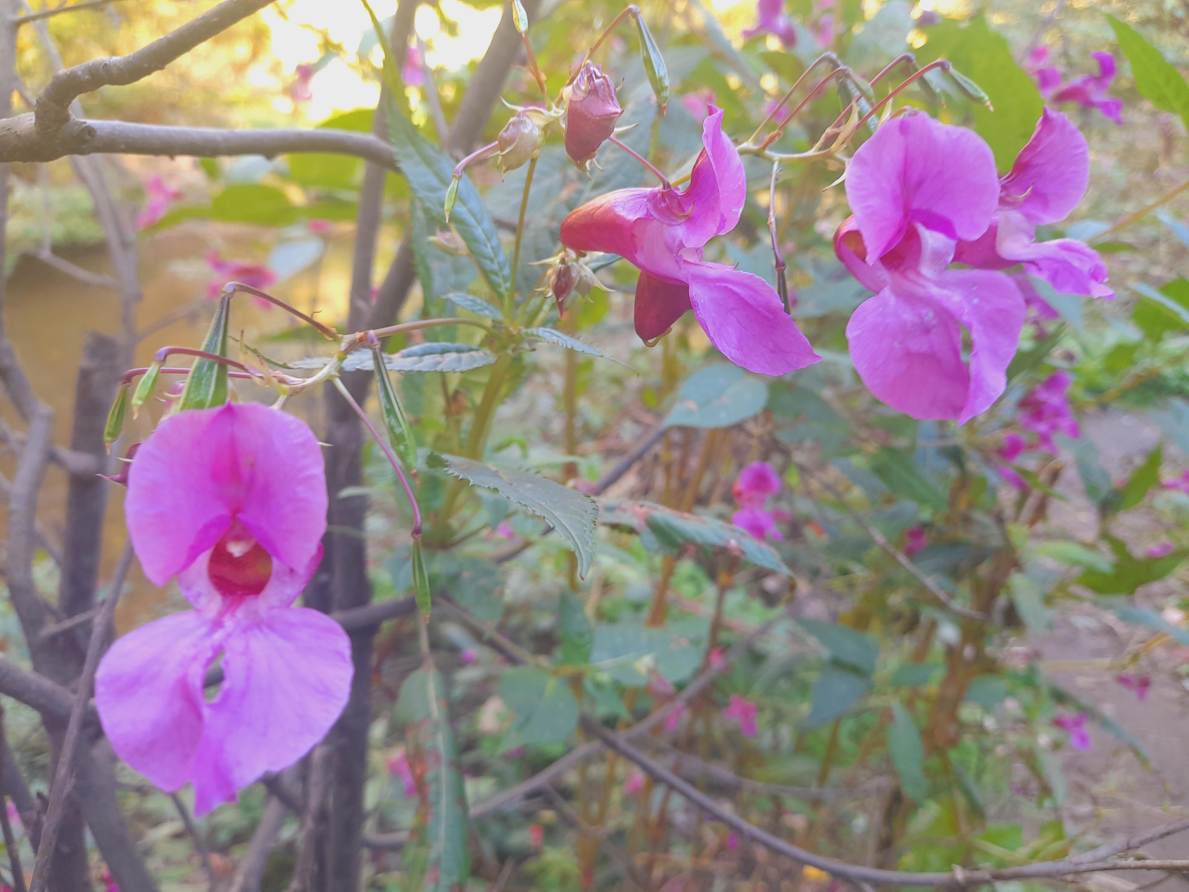 Дальше я двинулась по тропе вдоль Лихоборки. Всюду заросли бальзаминов. Вот этот вырос из пенька))