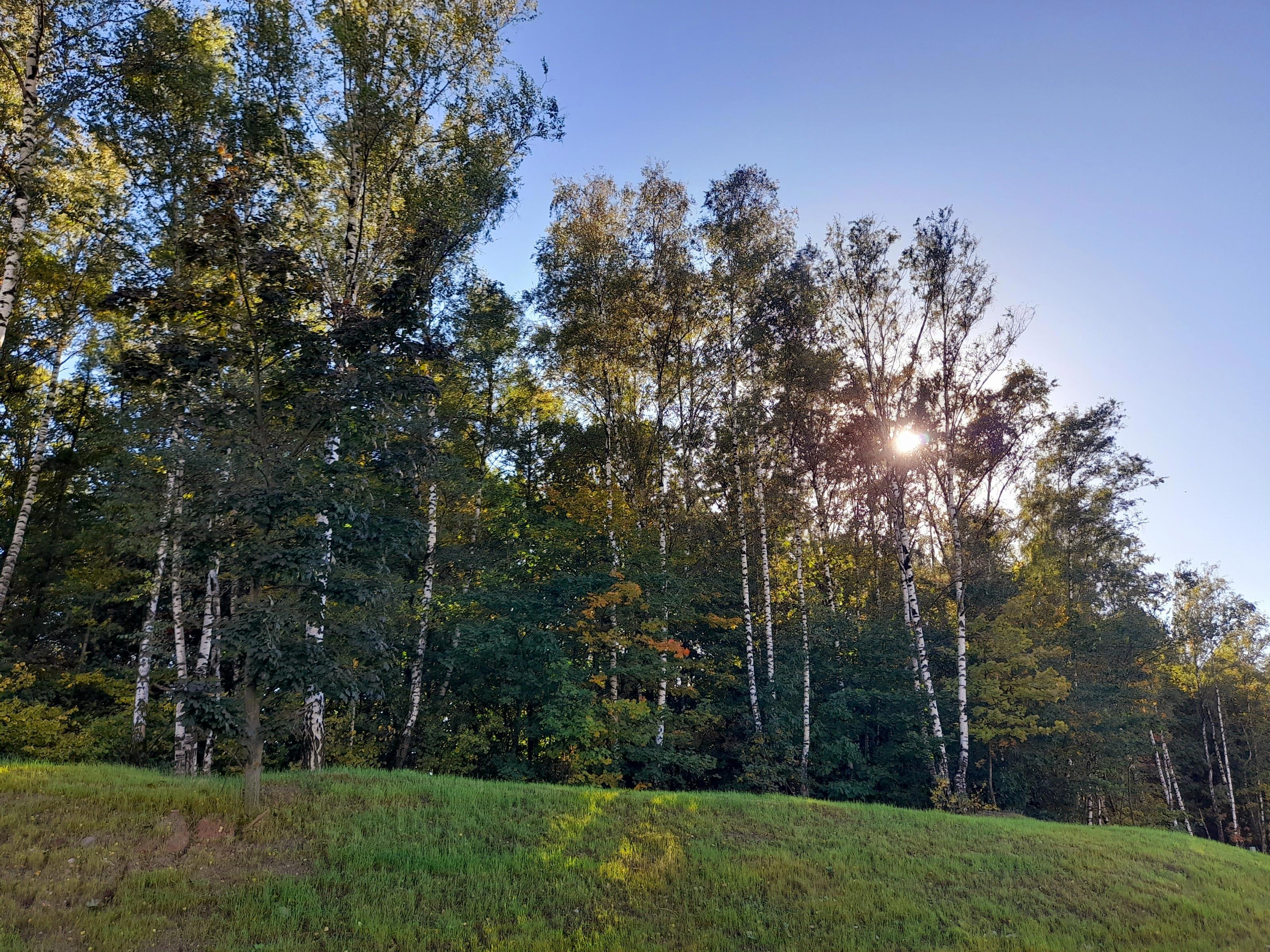 Здесь народ устроил пикнички, отдыхает в прохладе берез и вётел.