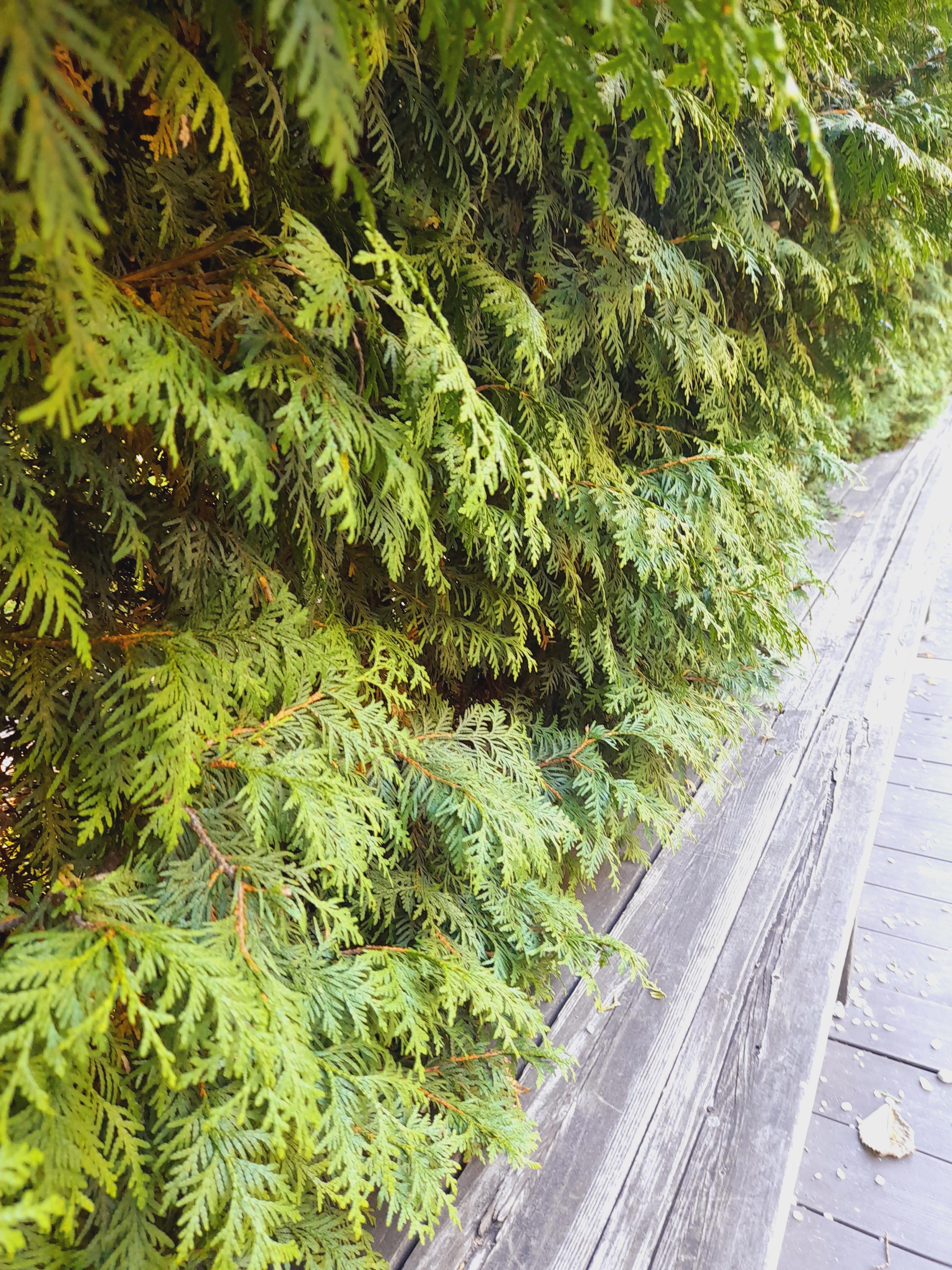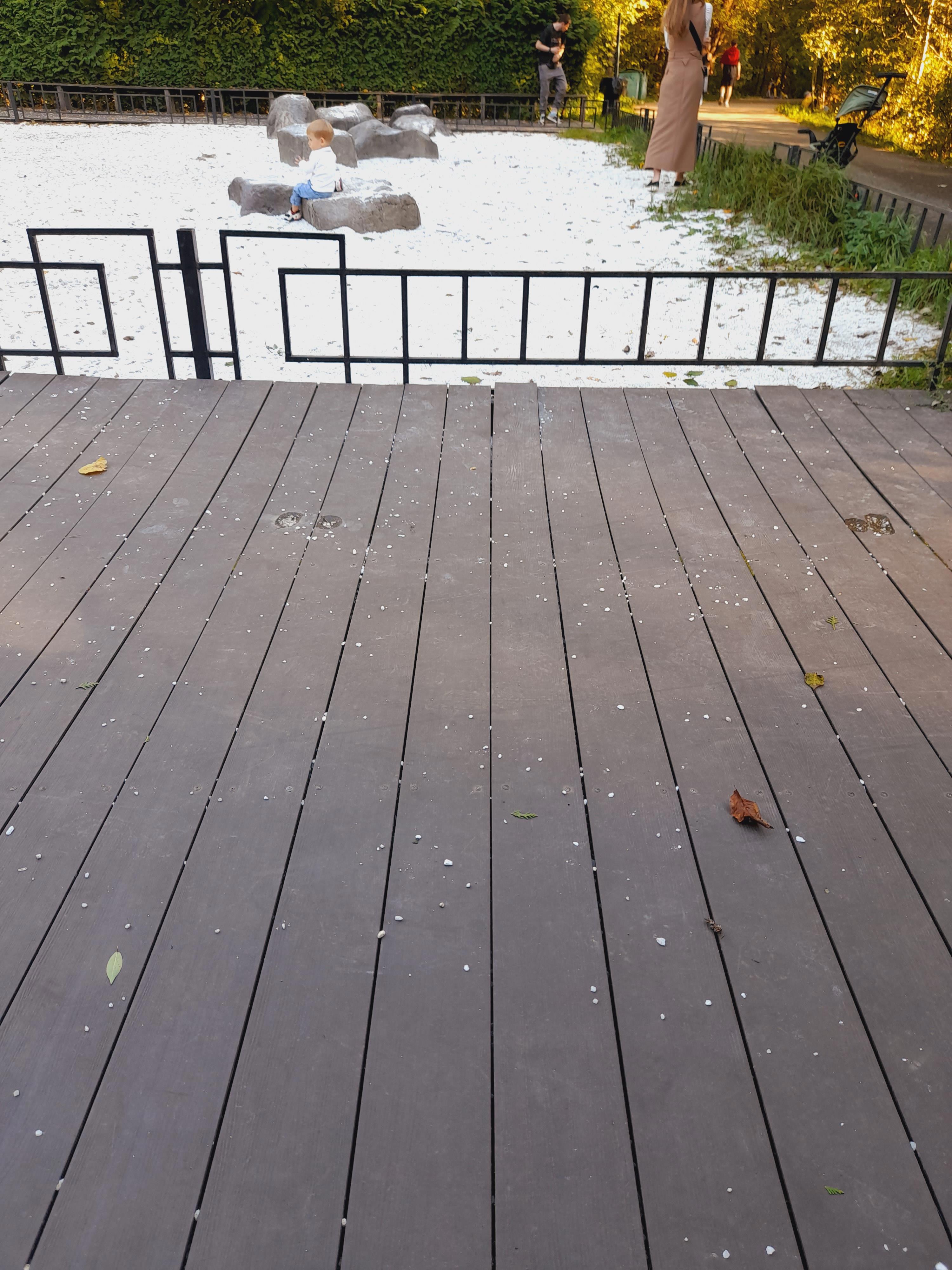 Там еще есть такая досчатая площадка, усаженная можжевельником и уставленная скамейками: