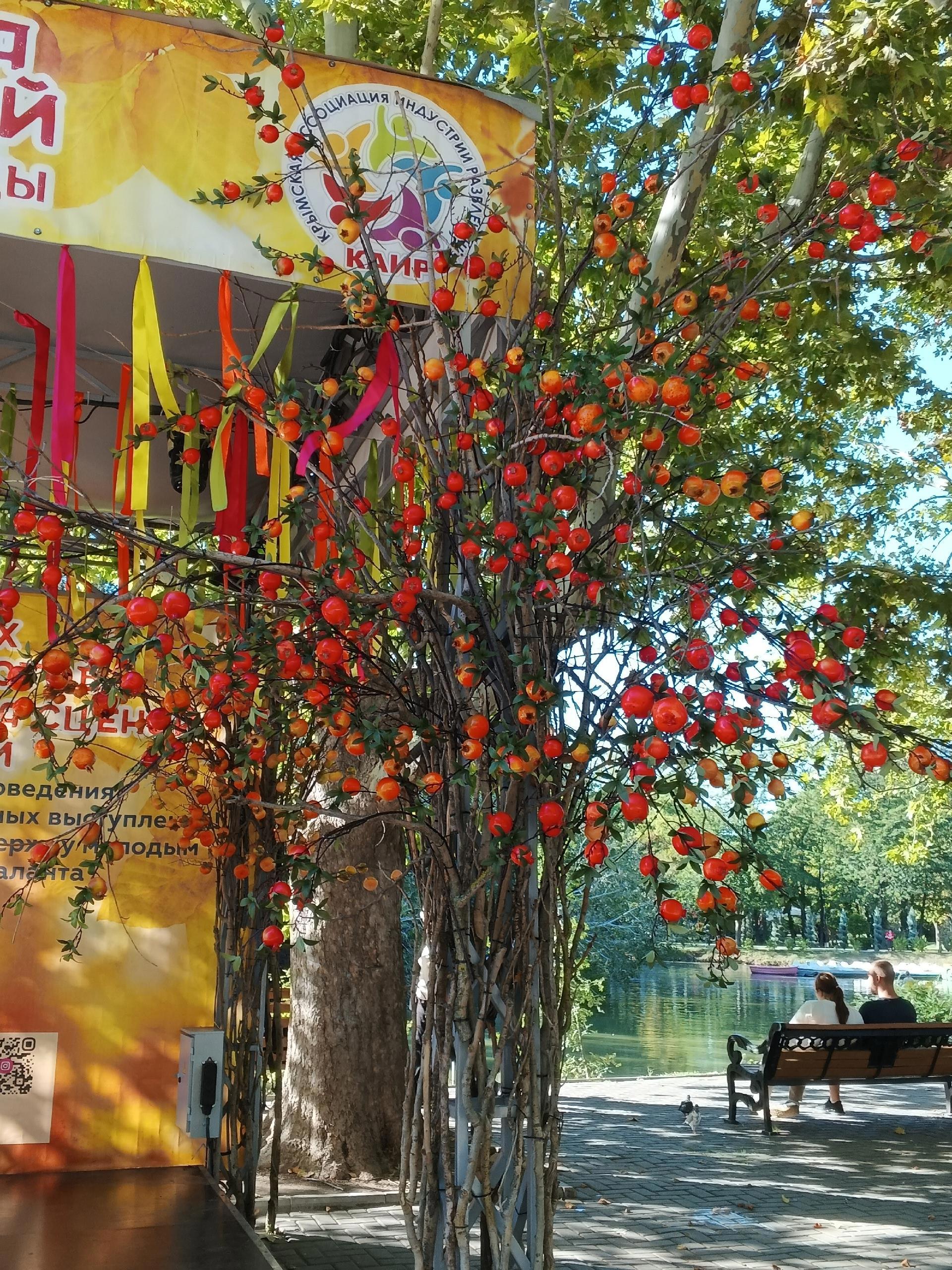 Затем мы вышли на центральную аллею, а там много интересного. Например, сцена для всех желающих выступить. Здесь часто выступают с марионетками, танцуют юные танцоры, поют, показывают сценки. Но в понедельник, в середине дня на сцене крутятся только малыши, а мамы следят за ними. Украшена сцена очень приятно, яблоневыми деревьями.