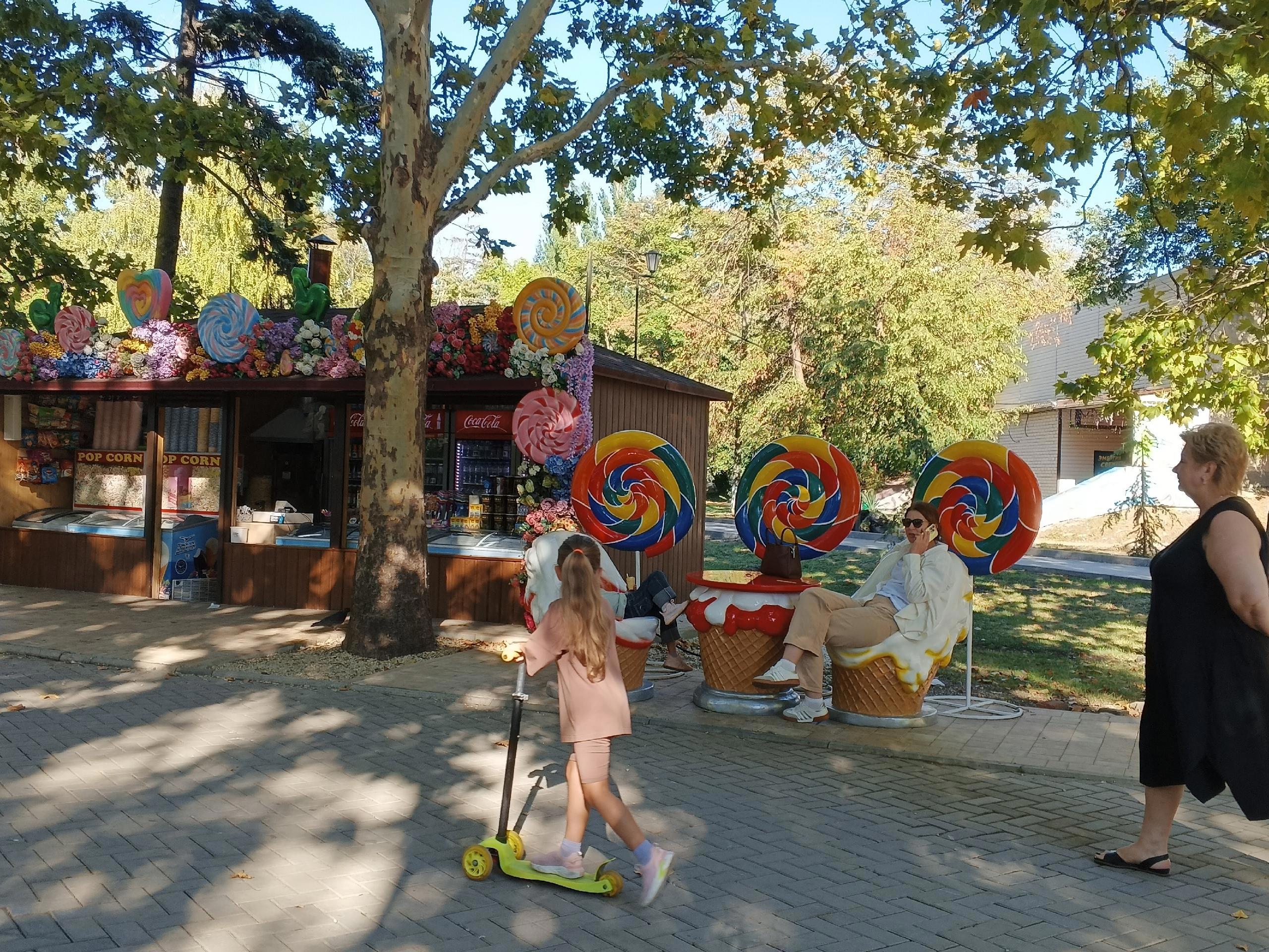 Так же на аллее много кафе и точек продающих сладости для детворы. Оформлены они тоже очень приятно.
