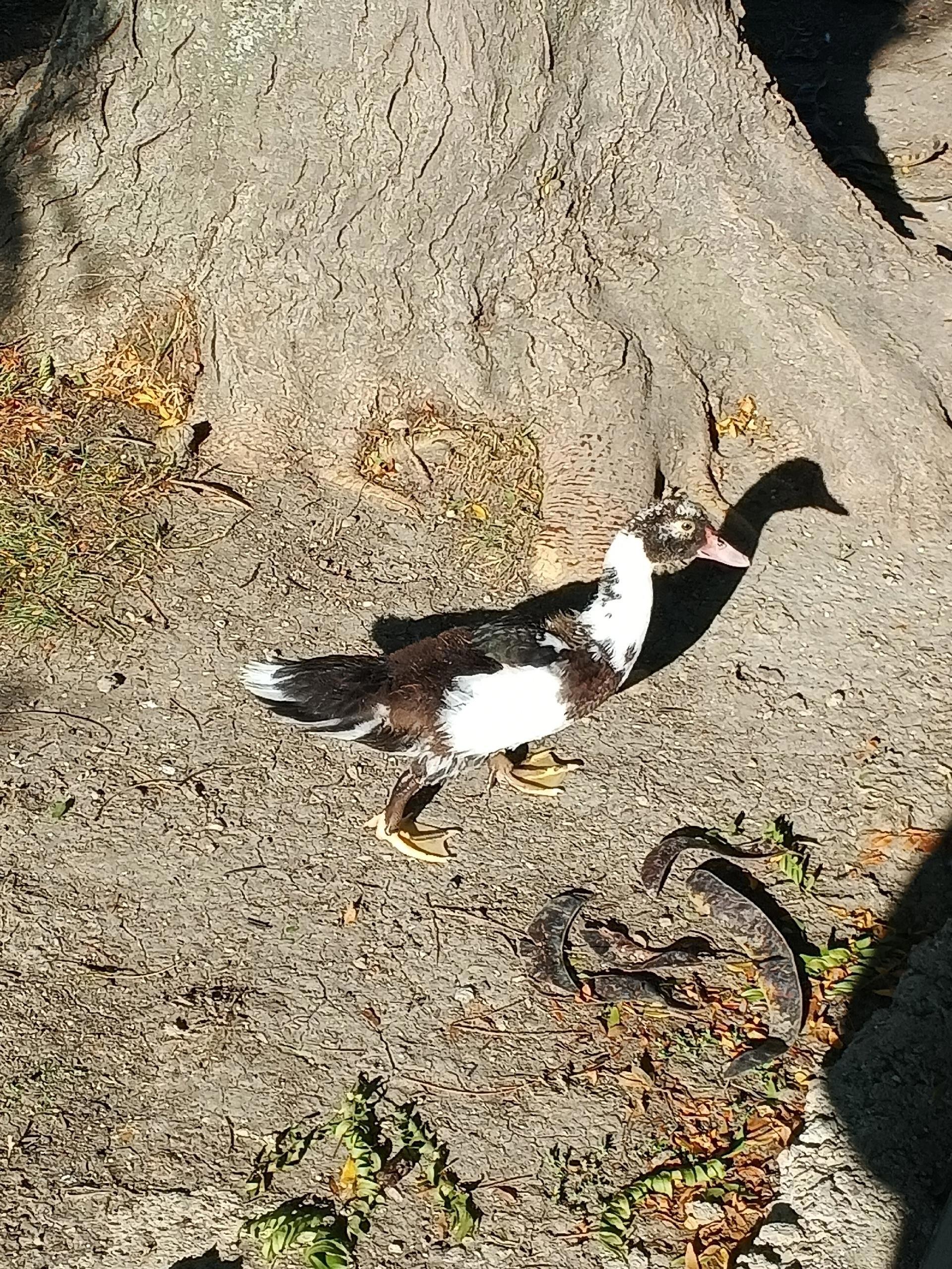 Увидев нас возле Яшки к нам немедленно направилась парочка индоуток, не тех, которые сидели на берегу с другой стороны пруда, другие, а так же радом закрутились молодые индоуточки, судя по пуху на спине и длинным голенастым лапам, в которых они путаются, они из кладки, которая появилась в середине лета.