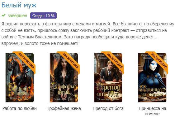 Автор: Плотников СергейЯ и Варвара Мадоши закончили историю про Андрея Вяземцева, нормального мужика, которому просто не повезло по жизни. Дважды женившись и дважды оставшись вдовцом, он понял, что что-то не так именно с ним. Так бы Черному вдовцу и умереть в одиночестве на склоне лет, но... Нашелся работодатель из другого мира, который кроме возвращения молодости пообещал вывернуть проклятье наизнанку, превратив в благословение Белого мужа. Правда, для этого нужно переехать в фэнтези-мир с концами, без возможности вернуться. И перед тем, как зажить долго и счастливо выполнить плевую работенку: помочь паладину Света грохнуть тёмного властелина (юридическая категория опасности преступника)! Оружие? Сверхсилы? Не-а. Зато местная богиня Любви официально одобряет возможность взять себе до пяти жен! В компенсацию былого проклятия. Ну что может пойти не так, правда?