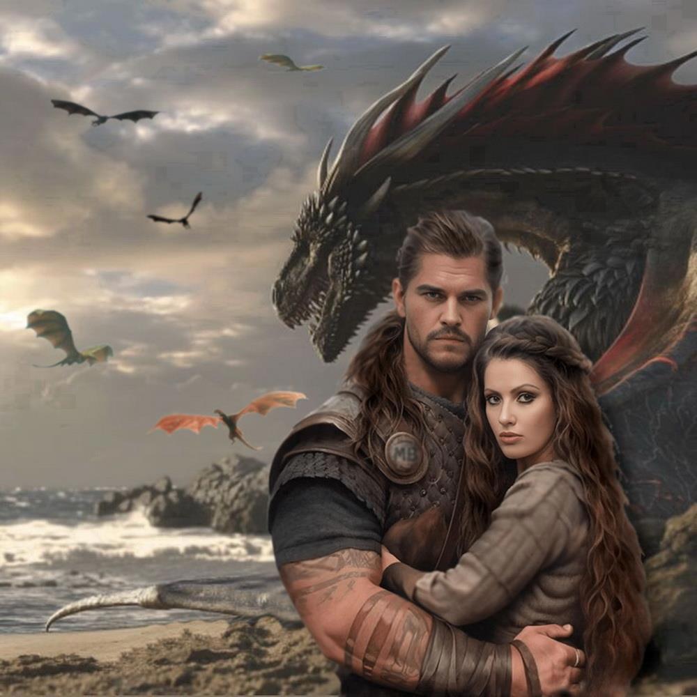 Это герои моего первого романа "В пламени дракона." Их история началась не сразу. Элейн - ГГ, но вот Мейр появляется лишь во втором томе. Точнее подготовительные упоминания о нём. Он влюбился в Королеву, будучи ещё горячим, пятнадцатилетним юнцом, увидев её впервые на коронации. Но довольно долго все его мечты о том, чтобы заключить предмет обожания в объятия, оставались на уровне несбыточных мечтаний. Элейн же, хотя и приметила парня спустя десять лет, и от её всевидящего, женского ока не ускользнули его помыслы, всё же оставалась безучастна. Нет.. его страсть не оставила её совершенно равнодушной, и он зажёг робкий огонёк, слабый отклик в её душе. Чем-то взволновал, и были моменты, когда ей хотелось, запустить пальцы в его волосы, да и Бог знает, чего ещё ей хотелось, но всё же Элейн не позволила себе переступить грань. Она изгнала это искушение, запихнула его в такой далёкий уголок своего сердца, что так бы там он и остался, но случилось нечто, что в корне изменило ситуацию. Ох... не хотца сполерить... ладно, скажу лишь что их путь друг к другу был долгим и тернистым. Но когда все преграды рухнули, больше ничто не смогло вырвать их из объятий друг друга. Хотя судьба и продолжала строить козни..