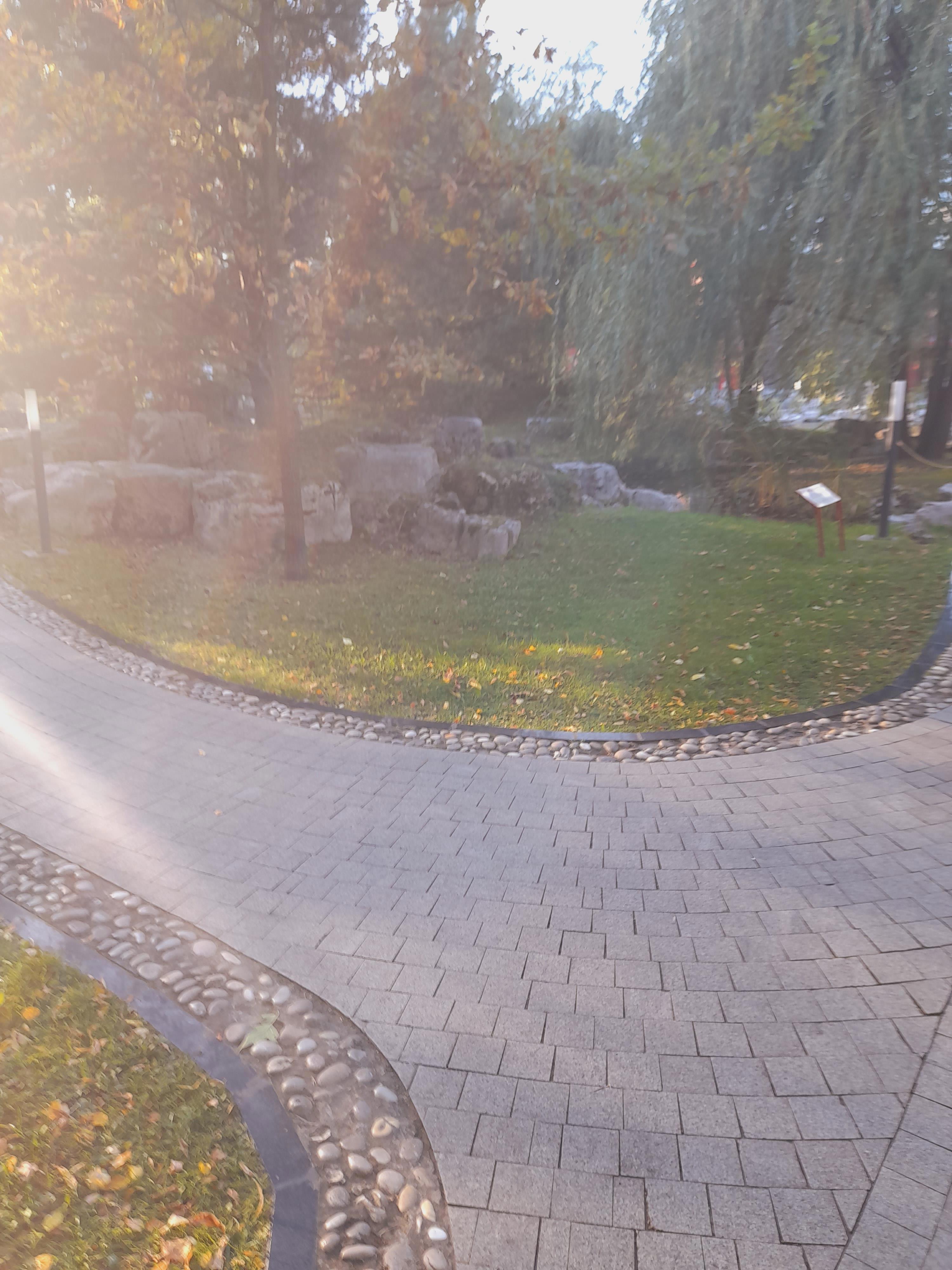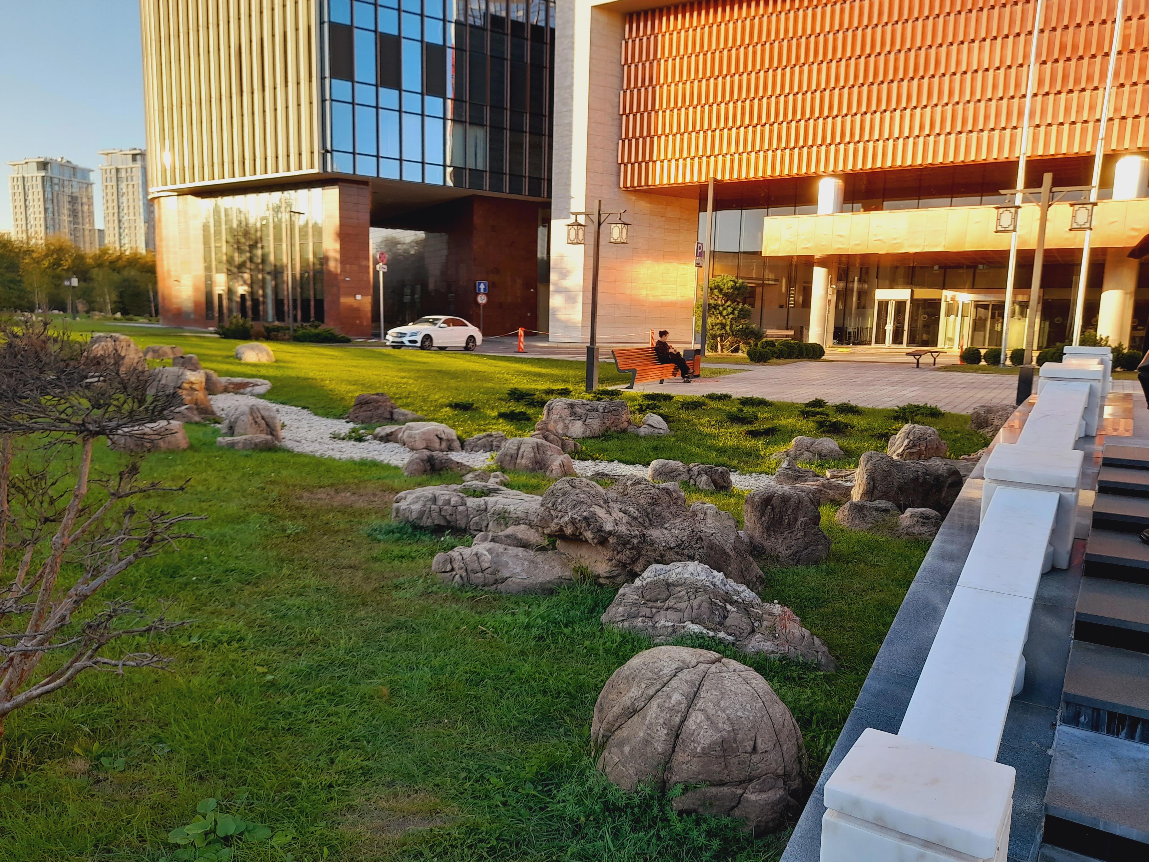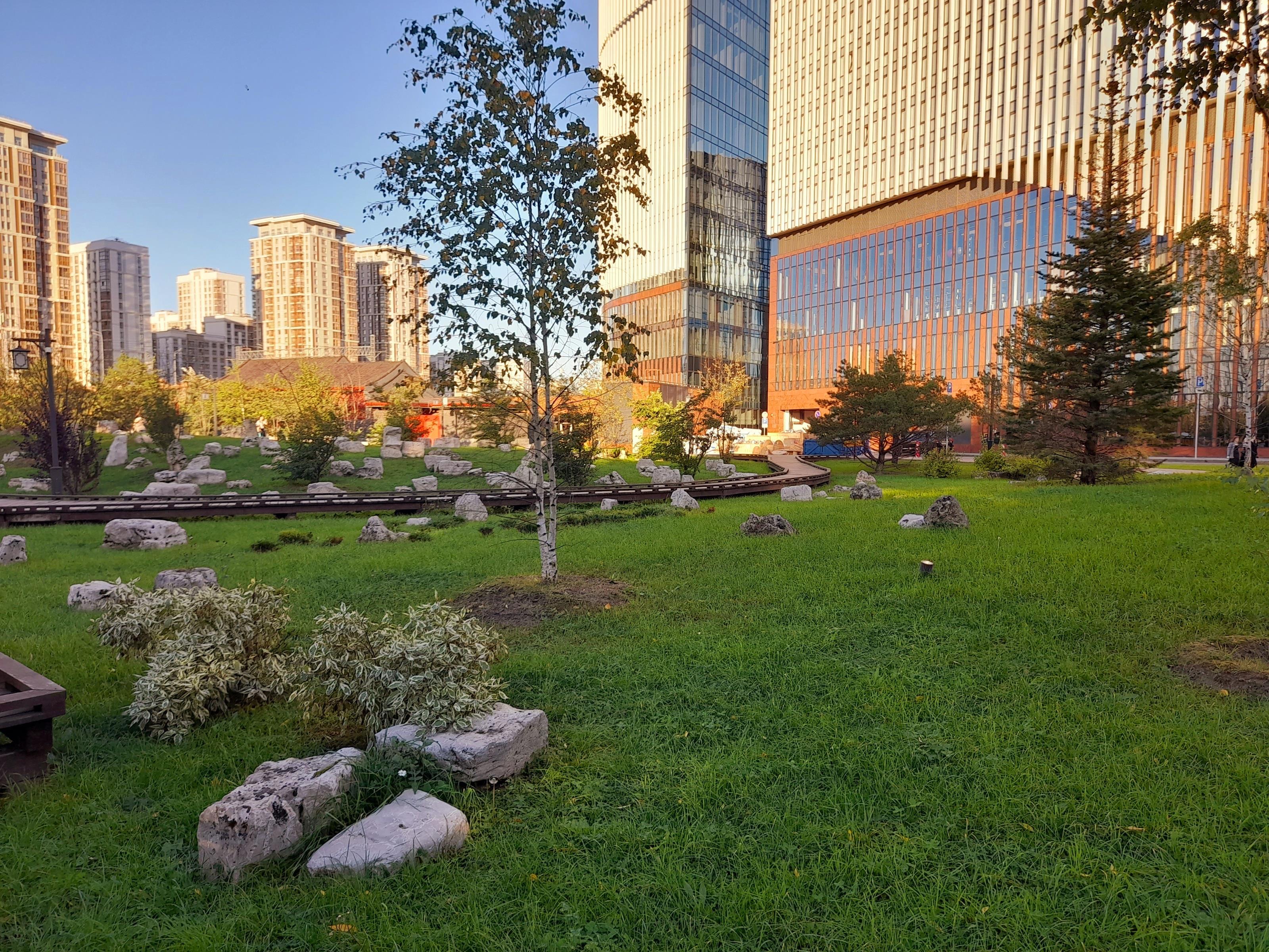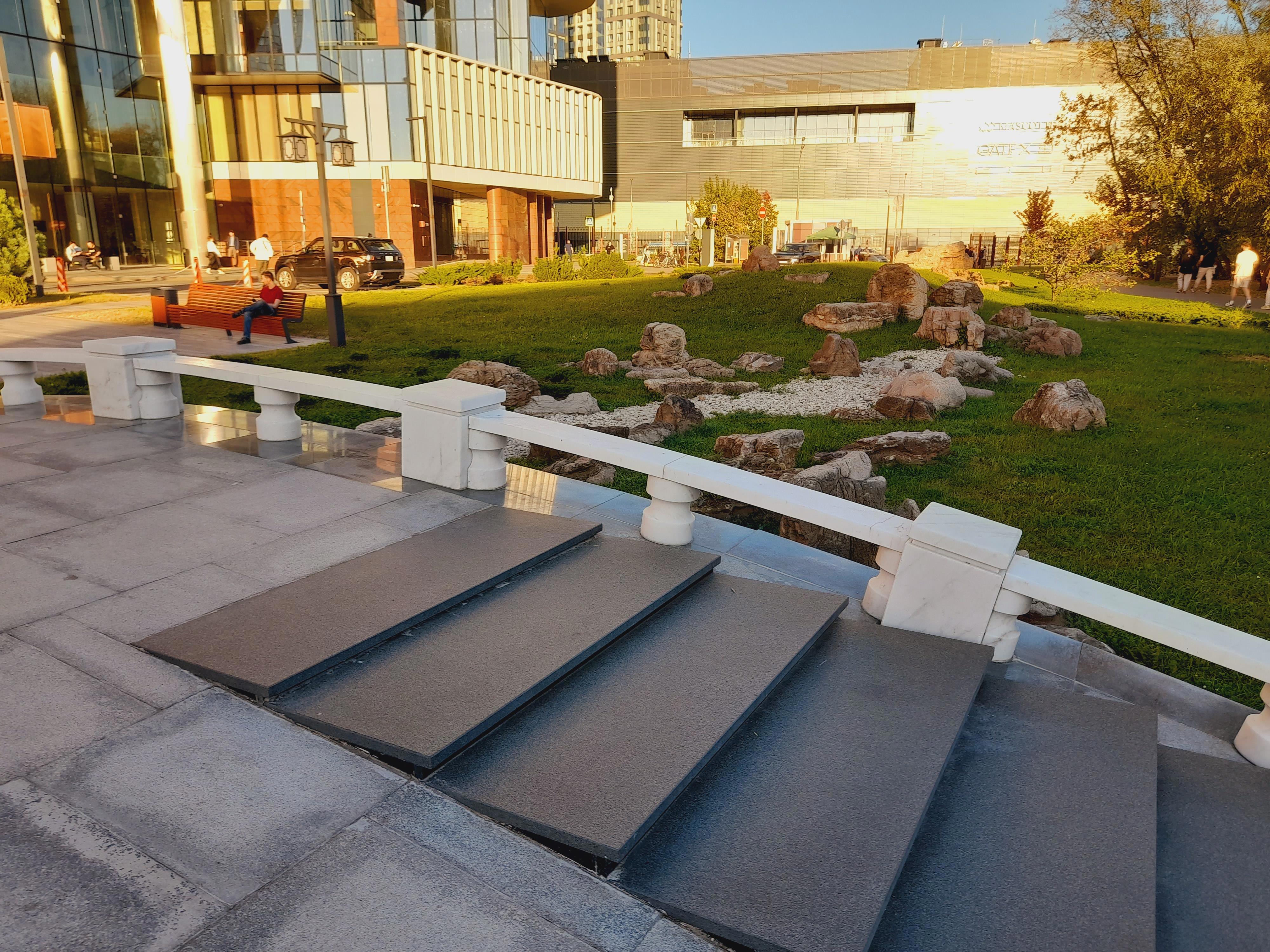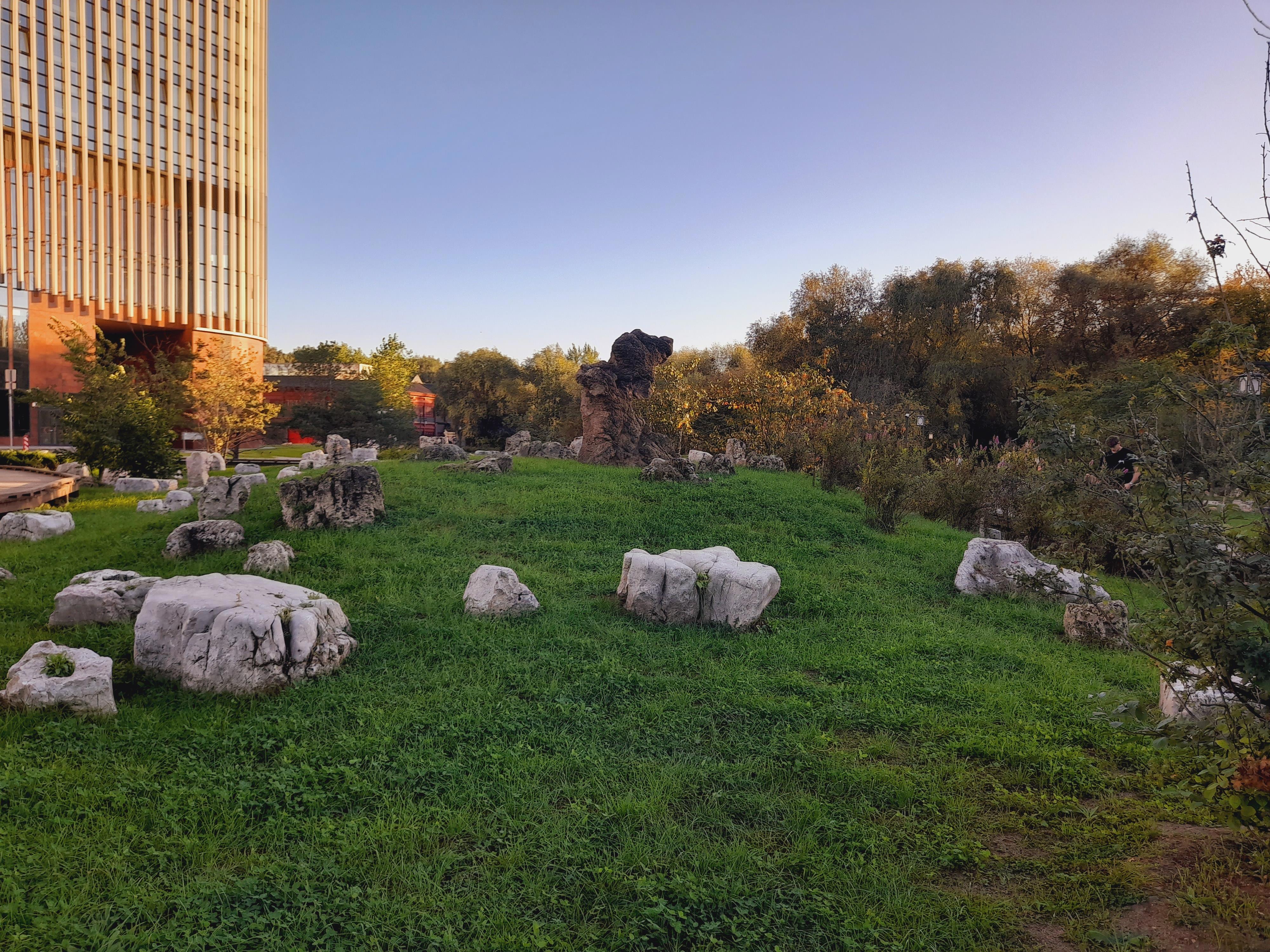 Все бы ничего, но охранники там, словно церберы, готовы перегрызть глотку ступающим на газон людям! Я хотела сфоткаться в камнях и сошла с дорожки -- столько выслушала! Две женщины фотографировались под сосной у пруда и один из охранников на них наехал за то, что встали на газон. В общем, они с ним поругались. Он орал, что не дорожит своей работой и может показать им, где раки зимуют, и сразу же уволиться, если начальство этого не оценит. Это, мол, частная территория, у них свой регламент, куда не пускать, и здесь запрещено вот так всюду топтаться. Одна дама сказала, что он испортил им снимок. А он ответил, что, значит, она -- плохой фотограф...