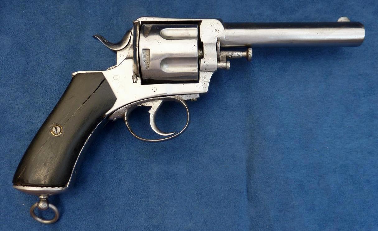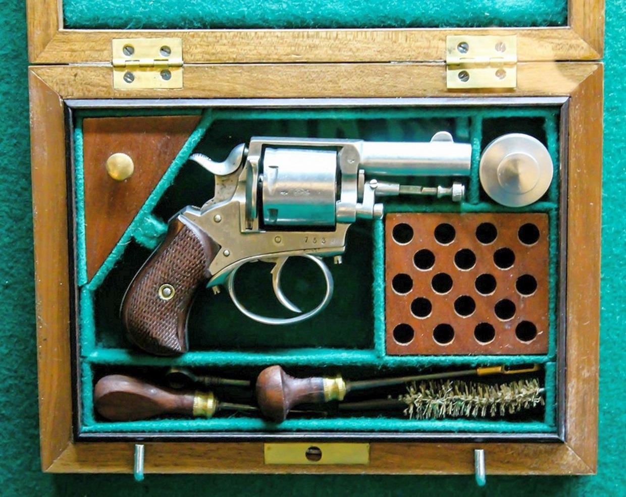 Револьвер поменьше вы наверняка уже опознали – это «бульдог». А тот, который побольше – это The Webley R.I.C. Точнее его гражданская версия. Эти револьверы фирма «Webley & Son» выпустила в 1868 году для «Королевской полиции Ирландии» (Royal Irish Constabulary). Отсюда и сокращение R.I.C. Точное название этого револьвера «Webley RIC № 1». Для граждан укоротили ствол, ещё кое-что по мелочи переделали и стали продавать под маркой «Webley RIC № 2». Нельзя исключать вероятность, что у Холмса был именно такой револьвер: