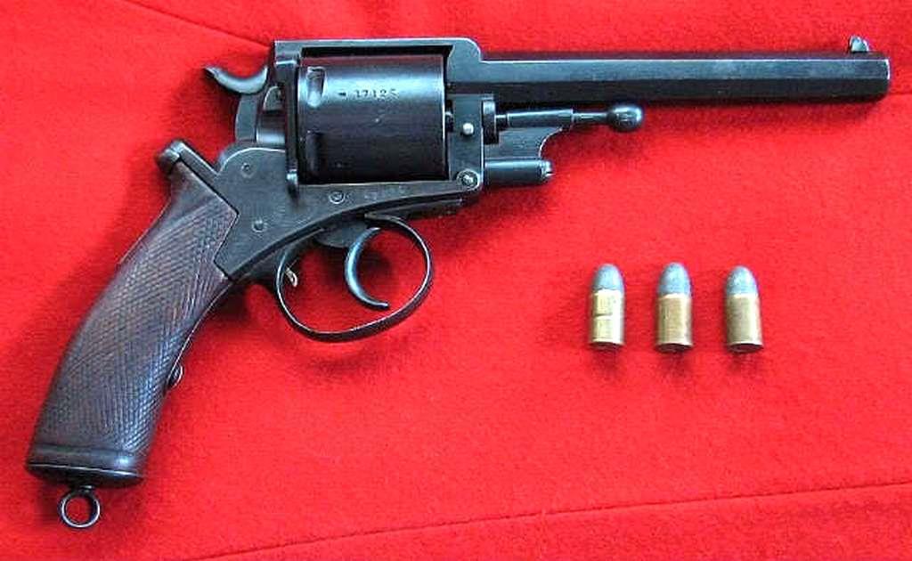 Хотя более ранний вариант. Ведь на фото модель 1892 года. Хотя, возможно, у него был вот такой револьвер Адамс МкIII образца 1868 года: