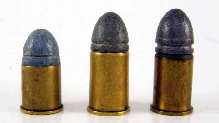 Общая длина револьвера примерно 160 мм, длина ствола всего 64 мм, барабан на пять патронов, калибр 11,2 мм (!), вес всего 450 г. Потом, разумеется, револьвер делали под разные патроны и по мощности, и по калибру. Вот только некоторые из этих патронов:
