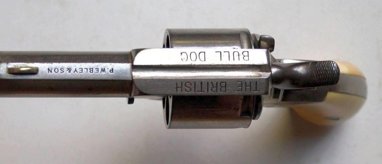 Здесь один из пистолетов вообще имеет складной спусковой крючок более характерный для мелкокалиберных «велодогов». Да и сама фирма «Веблей» выпускала револьверы под маркой «бульдог» иногда с серьёзными внешними различиями. Например, была модель с невыступающим курком для более удобного карманного ношения. Однако при всех этих отличиях все «бульдоги» считались очень надёжными и безотказными. Поэтому их делали. Название очень быстро стало нарицательным. Вот, например, револьвер типа «бульдог» производства не фирмы Веблей. Его сделали со складным спусковым крючком и с некоторой претензией на шик: