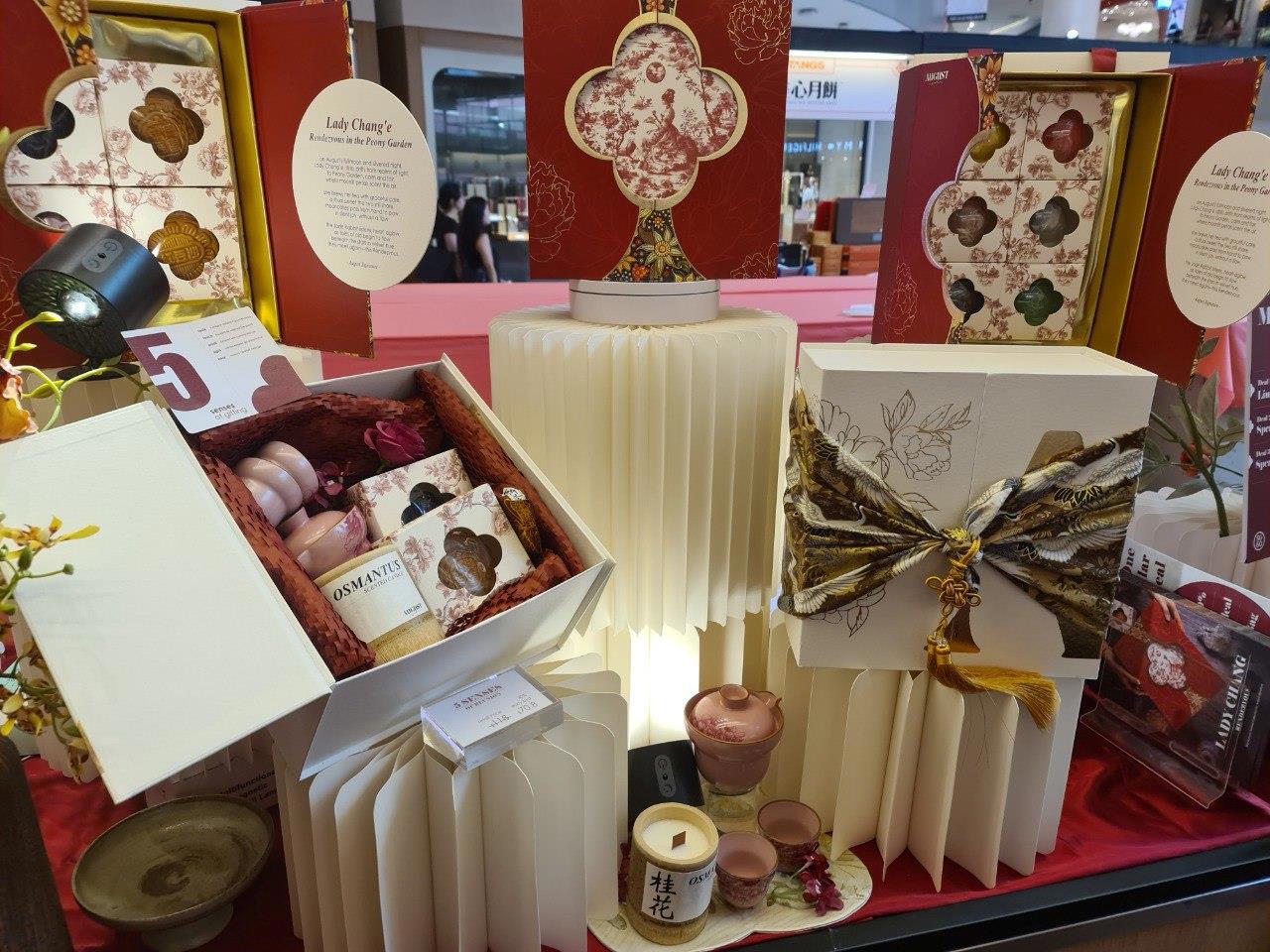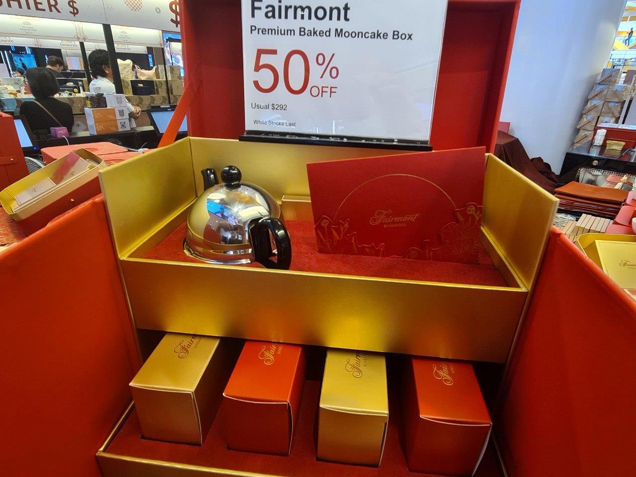 (это тоже одна из тразиций Фестиваля - все самые крупные отели Сингапура готовят свои наборы всяких финтифлюшек вкупе с мункейками... Обычно они заоблачно дорогие, как вот этот набор от отеля Фэйрмонт. "Оригинальная" цена - 292 доллара, но уже скидка 50%