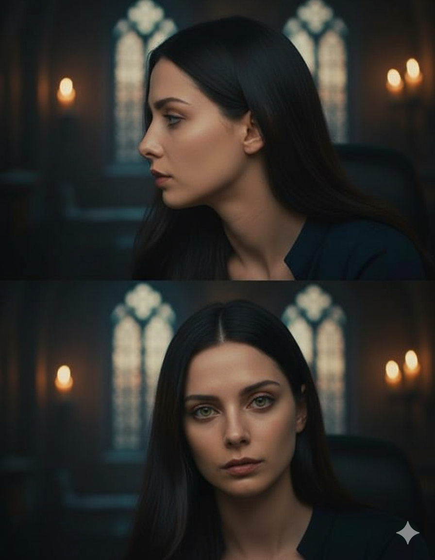 Сначала нужно было создать модельки героев, потом прописать ракурсы, эмоции, выражения лиц, потом сделать фон, потом все это совместить... Час ушёл точно, причём с помощью ещё одного человека, который догадался до правильных промптов))