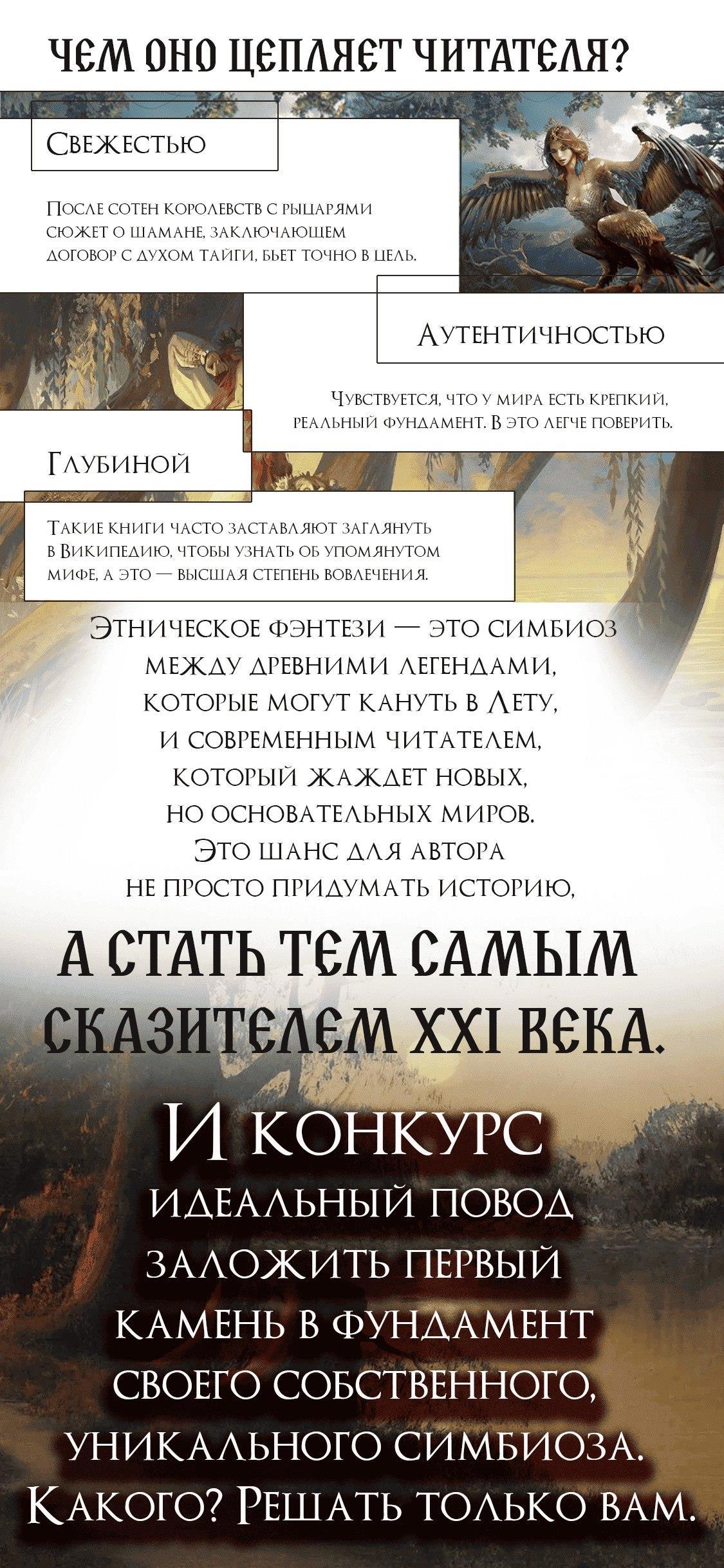 И пока вы читаете эти строки, на Author.Today как раз открыты врата в эти миры, я сейчас говорю о конкурсе на лучший однотомный роман в жанре этнического фэнтези, который недавно стартовал. Самое время отправиться в экспедицию за вдохновением.