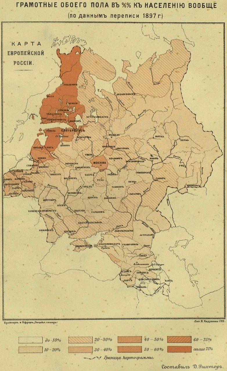 Одна изъ центральныхъ баекъ большевистской исторiи - лютая, бѣшеная безграмотность въ Россiйской Имперiи. Молъ, тамъ читать умѣлъ хорошо если каждый пятый - ууууу, отсталая страна! А потомъ какъ пришли большевики - и всѣхъ научили читать и писать - ооооо, герои!