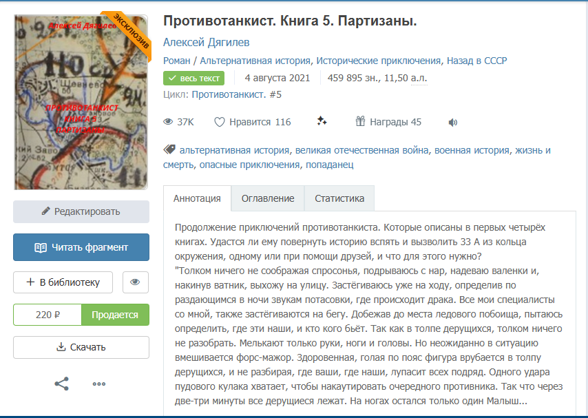 Автор: Алексей ДягилевВпереди выходные и готовиться к ним нужно заранее, тем более осень уже в самом разгаре и дни стали гораздо короче, ну и вечера соответственно длиннее. В комментах к прошлых статьях меня спрашивали, будут ли скидки на цикл "Противотанкист". Да, на этот раз я запланировал скидки на все книги цикла в ночь на пятницу и до воскресенья. В добавок ещё несколько других произведений. Так что кто умеет и хочет читать интересные книги, спешите приобрести. Больше таких больших распродаж не предвидится, в сентябре уж точно. Дальнейшее внимание друзей-читателей планирую привлекать выходом обновлений...
