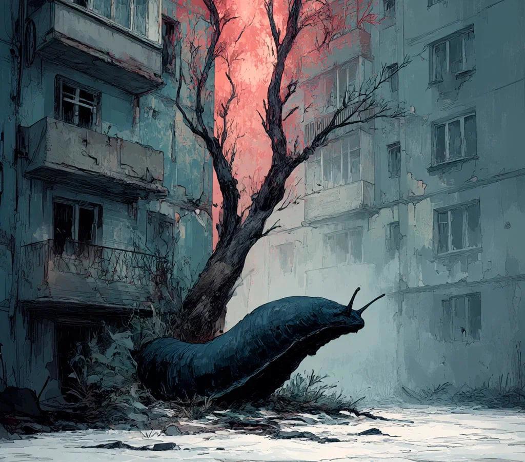 На конкурсе иллюстрировал чужой рассказ в жанре постапа. Пять картинок:
