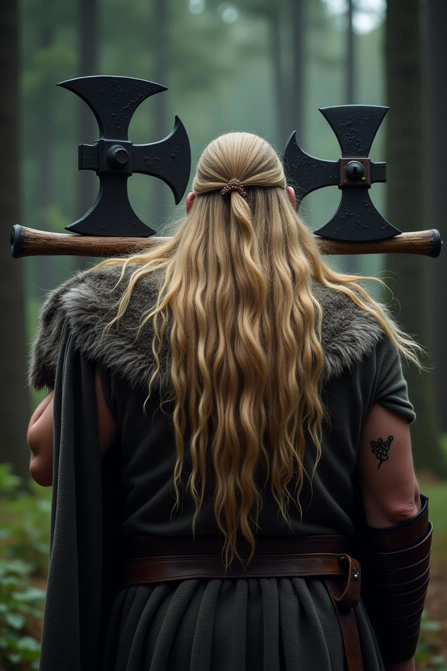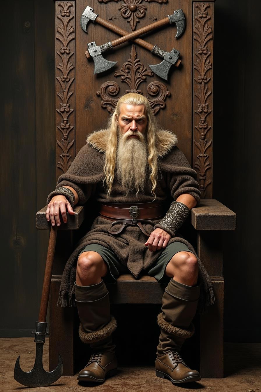 Хорошо поживший, много повидавший Хродир перенял опыт гномского секиростроения. Киркомотыготопоры прекрасны. Как и древнетаветские шортики в паре со шнурованными ботинками. Кстати, шикарные шузы под деловой прикид.