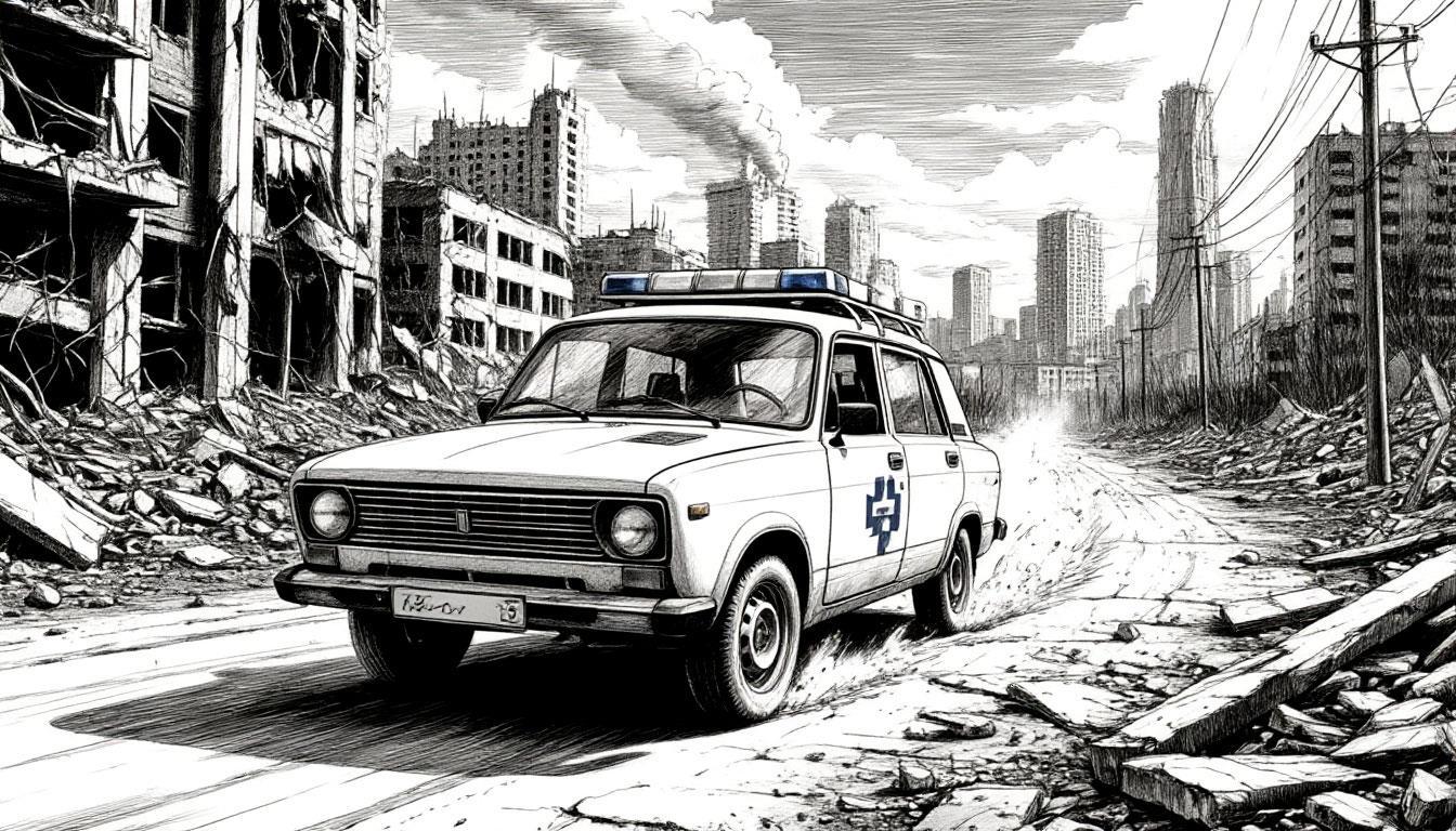 Чудовище из кирпича и тоски преследует «Люсю». Его шестиногие опоры вбиваются в асфальт, а из жерла вырывается не пламя, а леденящий душу стон.